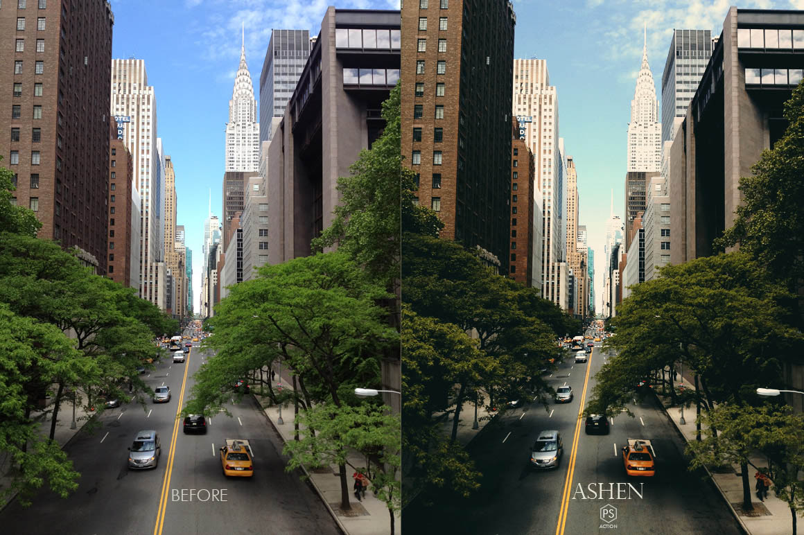 1. Ashen Photoshop Landscape Actions by Presetrain Co.