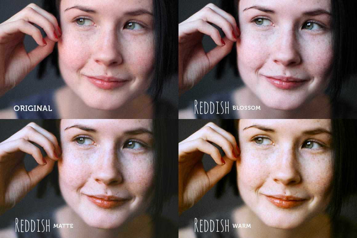 Reddish Photoshop Action will provide a subtle film-like processing and saturated colors in the shadows. Natural toning for portrait and fashion photography. Perfect fresh skin tones!