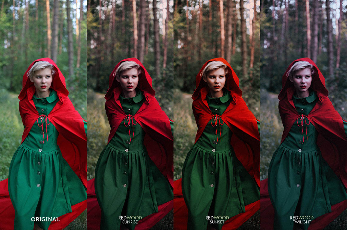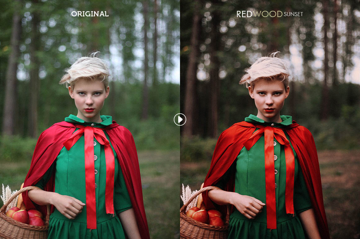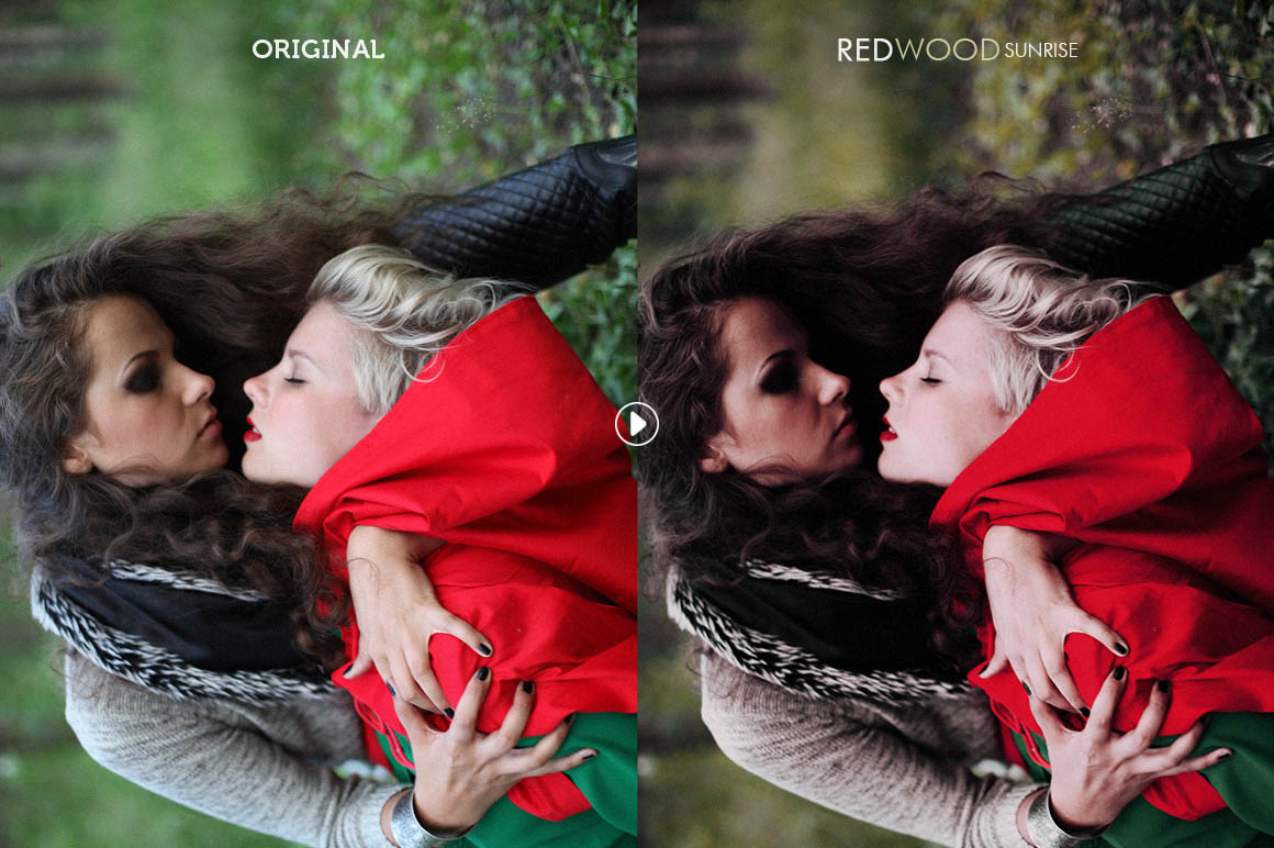 Redwood collection includes 3 portrait actions with unique color processing technique. Specially designed for natural light and environmental portraits, these actions should also go well with nature photography.