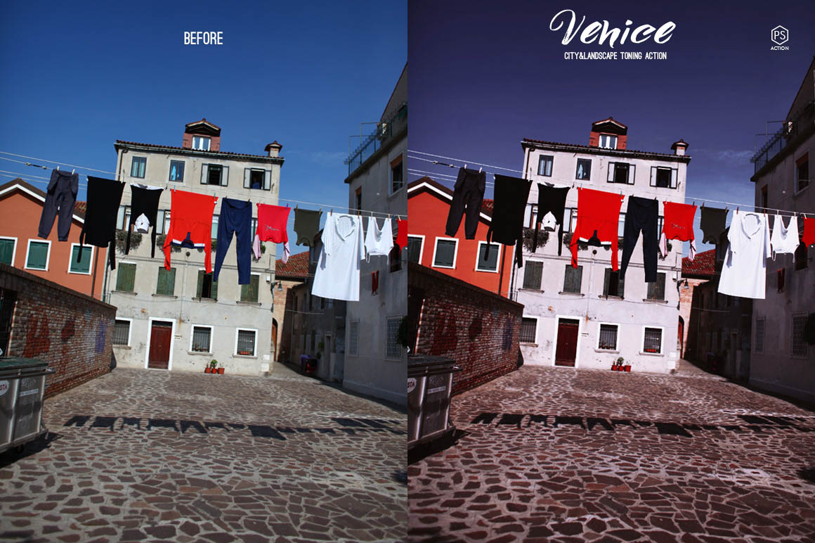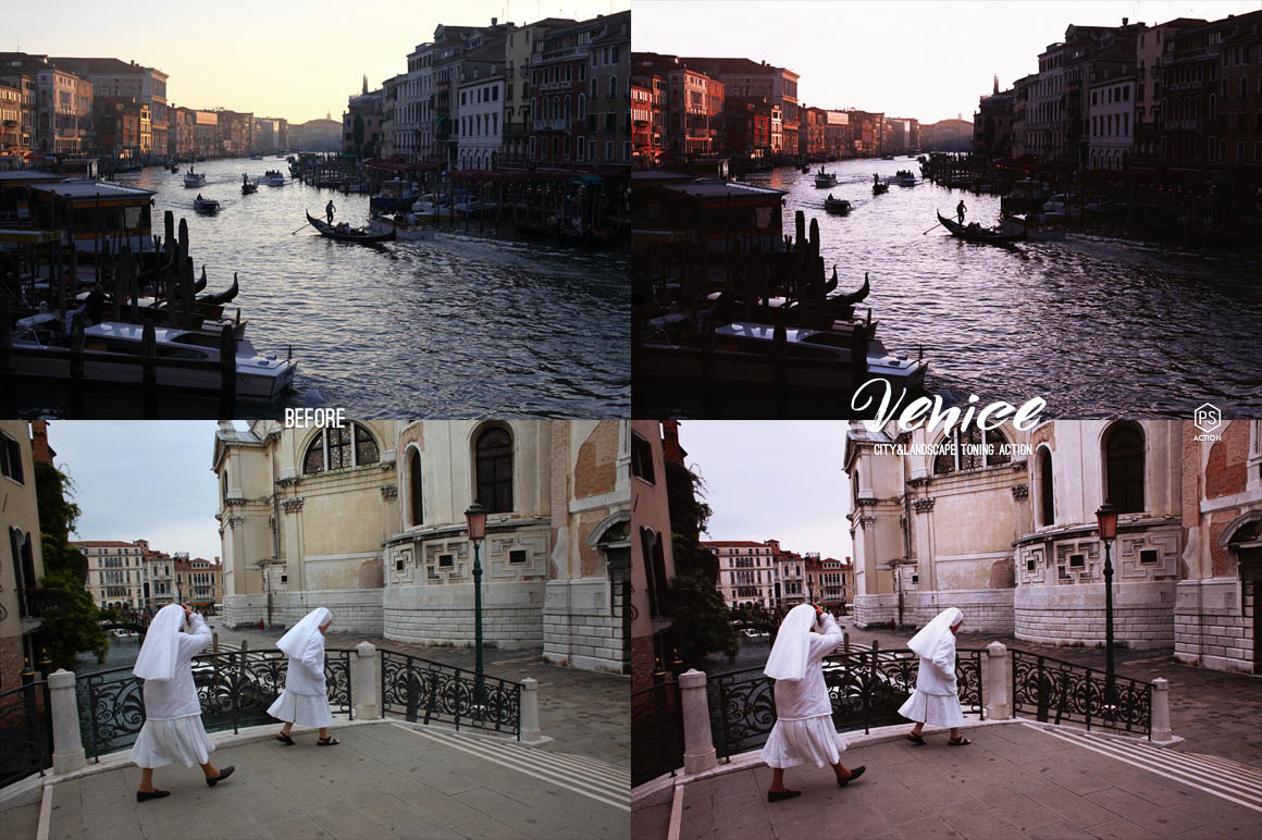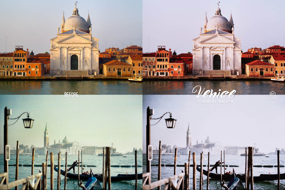Venice Photoshop Action is great for landscape and urban/cityscape photography. It should also go well with natural light portraiture. This action will provide a moody atmospheric toning, enhancing overall look and feel of your images. Editorial quality.