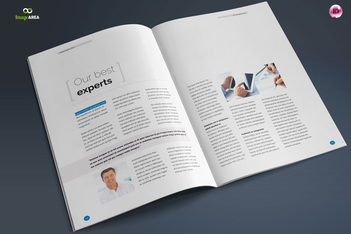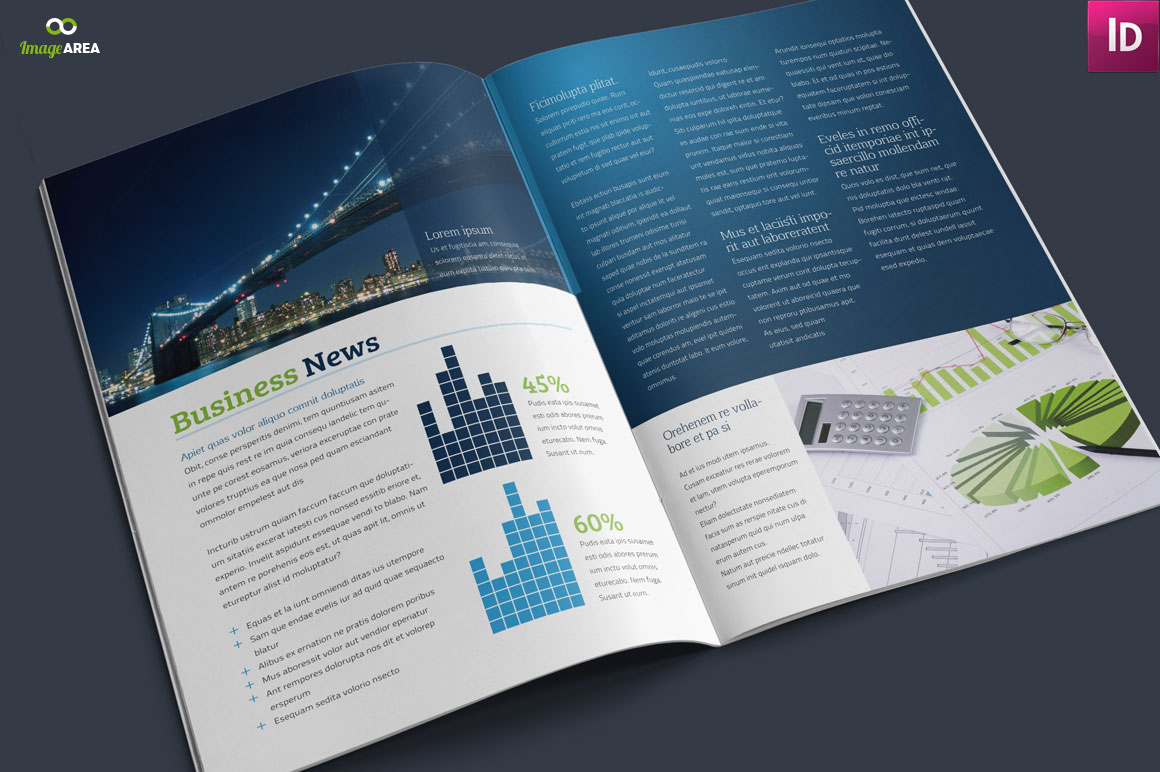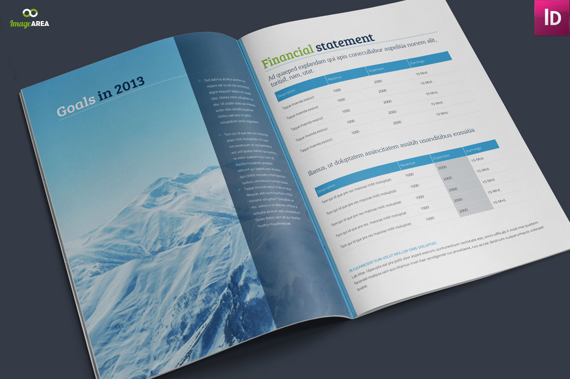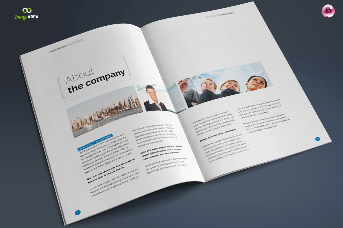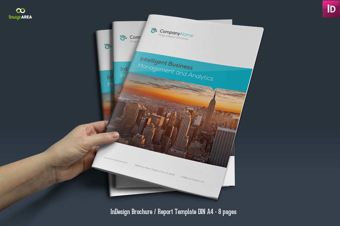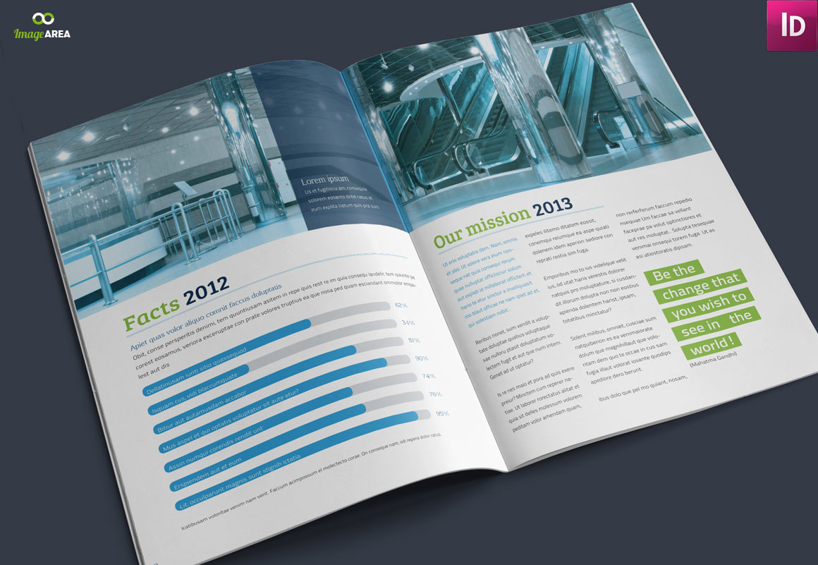 This is an InDesign template for an 8 page corporate brochure or report. The format is A4 (8.2×11.6 inches) with 3 mm bleed all around. The files are fully editable and print ready. The images are not included, but all graphics as vectors. Paragraph and character styles included, master pages included.