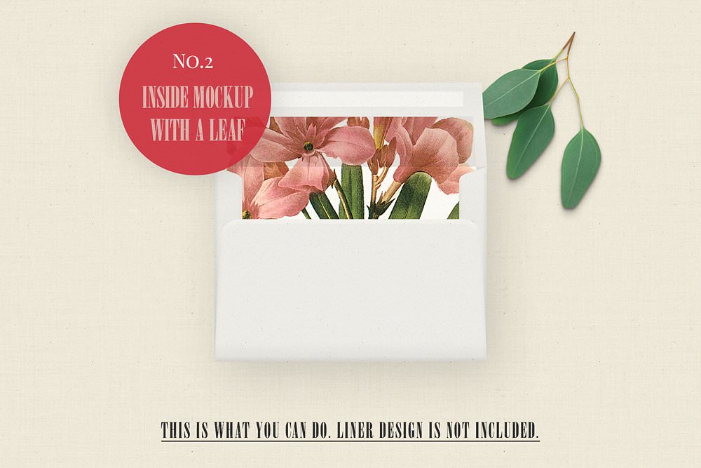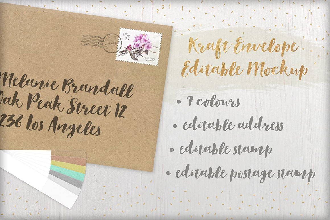 - envelope mockup with editable colour and liner (we use some magic to trim it from your flat design!)