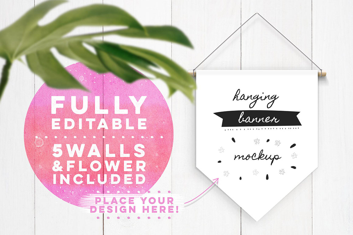 Made from scratch, very detailed hanging banner mockup with all elements editable is a great fit to your design collection. Features you’ll probably love: