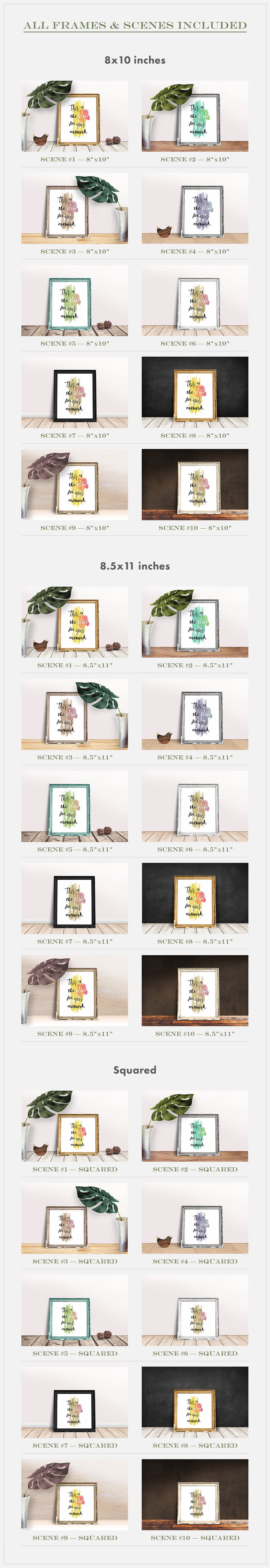 One of the most flexible frame mockups is here! Hype your print art, no matter it’s 8.5×11, 8×10 or squared.