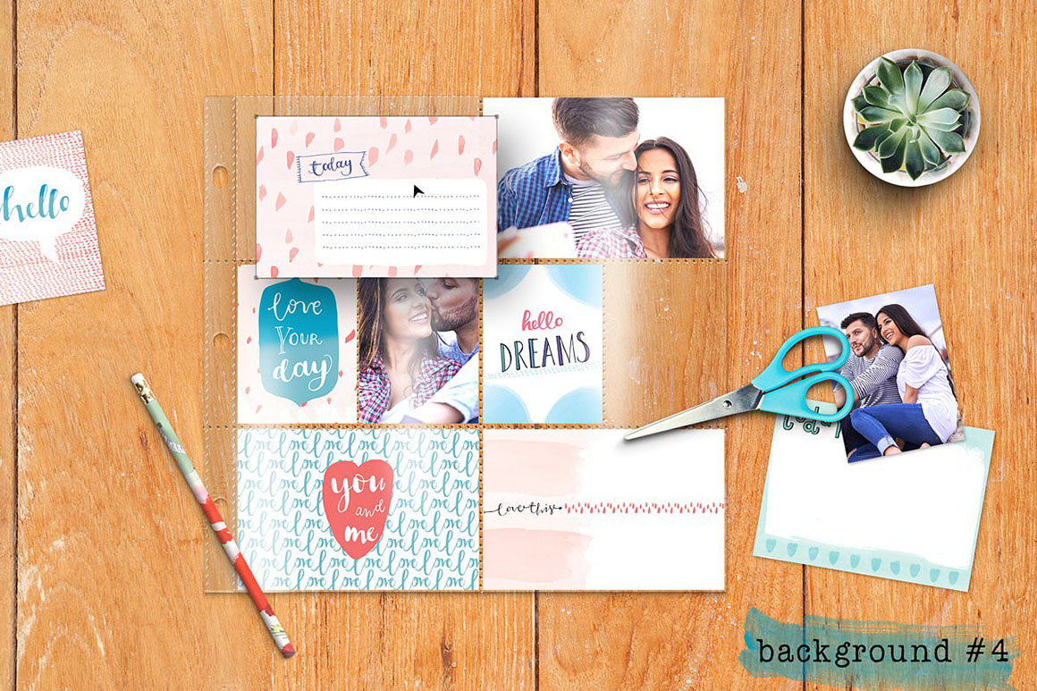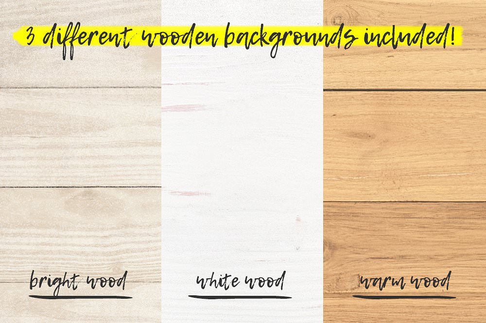 - 4 different backgrounds: light wood, natural wood, linen and natural wooden planks,
