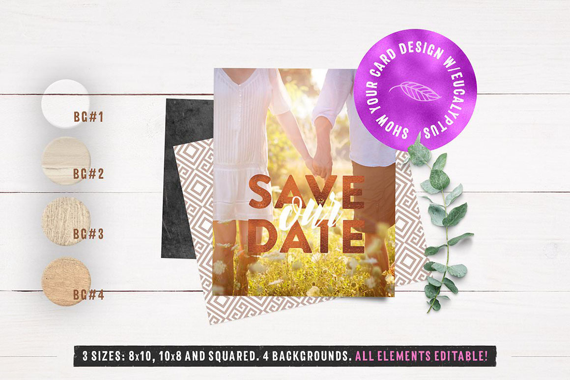 Eucalyptus leaves appear in wedding stationery and occasional cards designs all the time now, so it’s your turn ― show your design with style, with eucalyptus twig!