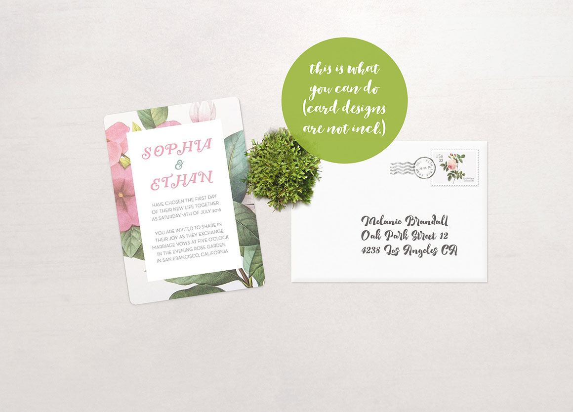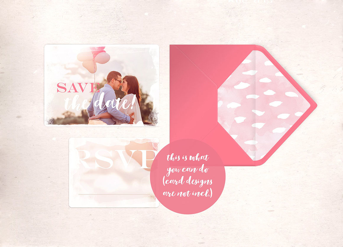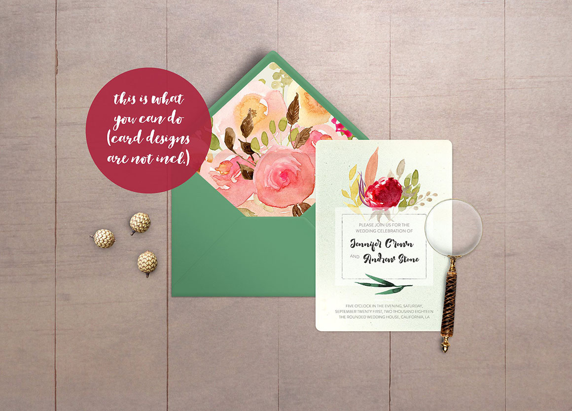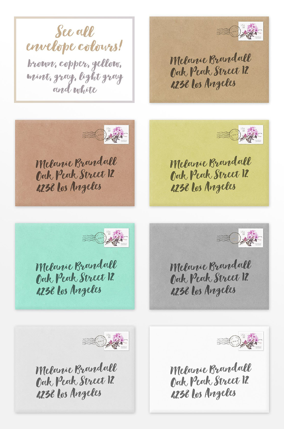 - 3 different editable envelope designs (size little bit larger than 5×7 or 7×5) ― opened, closed, closed with surround