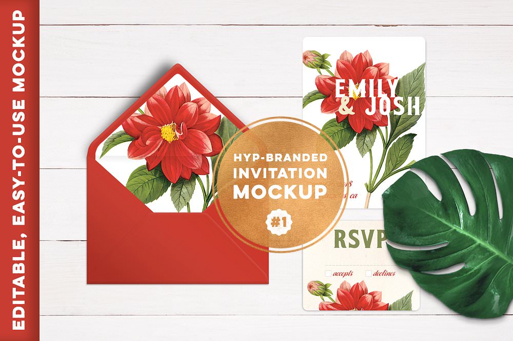 Let us introduce a part of the bigger Invitation Mockups Collection ― HYP-branded Invitation Mockup #1 (1st of 8). It’s pretty cool and very simple to use mockup to show your prints like invitations, RSVP, cards, photos, drawings, envelope liners and others with just one click.