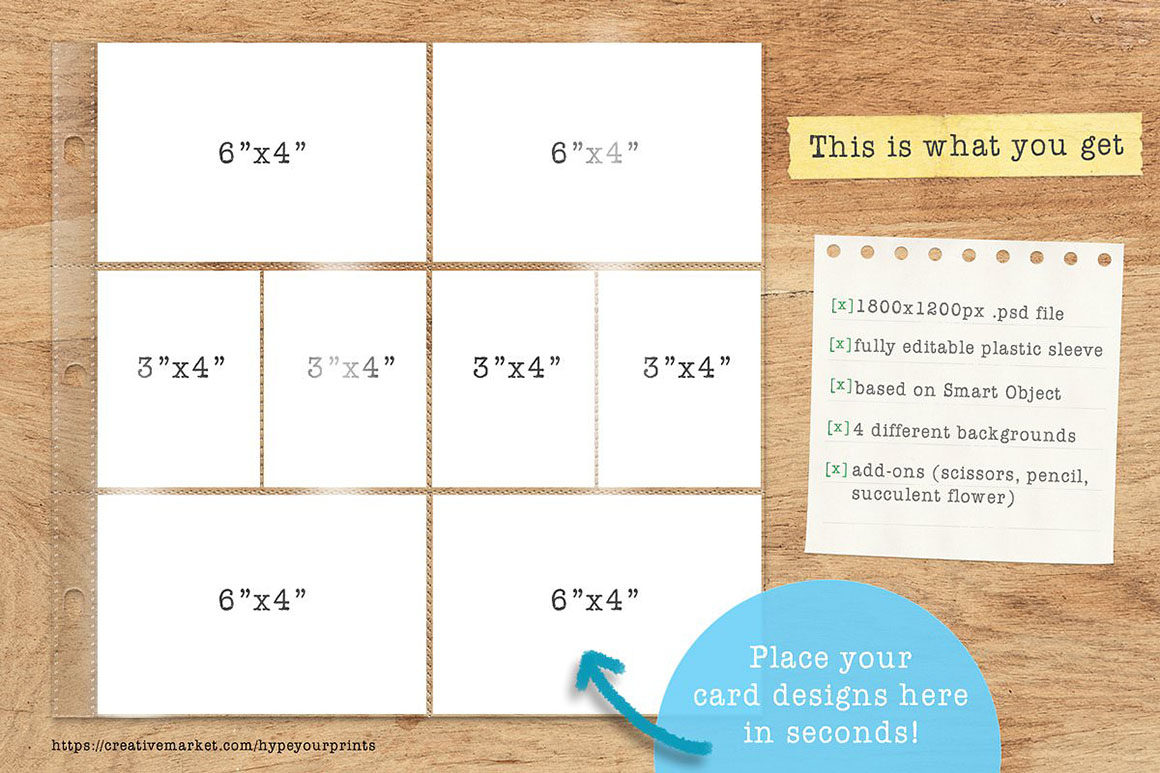 Memory cards designers and collectors on the board! Don’t waste your time for printing and photo shooting your designs anymore! Or make sure you like the way the photos look together before sending them to print. Thanks to this mockup you can see your cards exactly as if you shoot them!