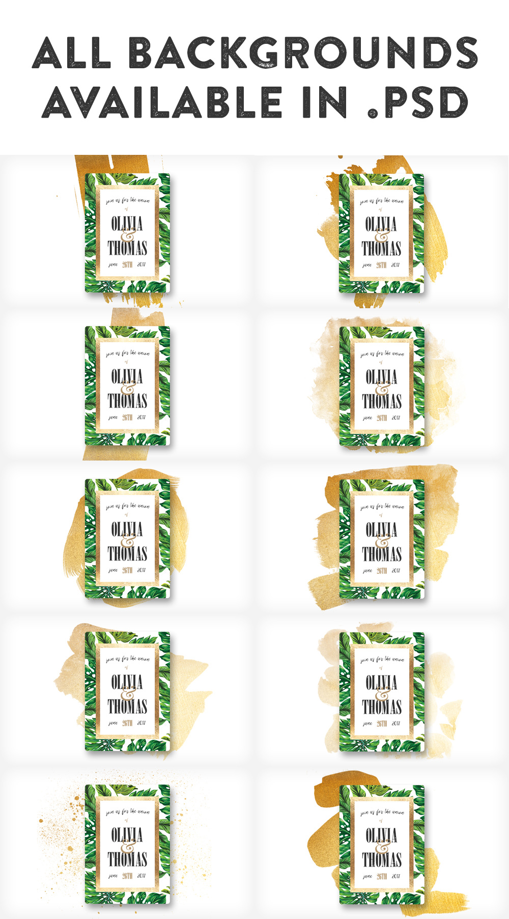 Card size is 5×7 in. inside 1575×1048 px Photoshop Document. We can customize card size for you, but we charge extra for this. Please let us know if you need different size – we’re responding quickly, so your custom size is near the corner.