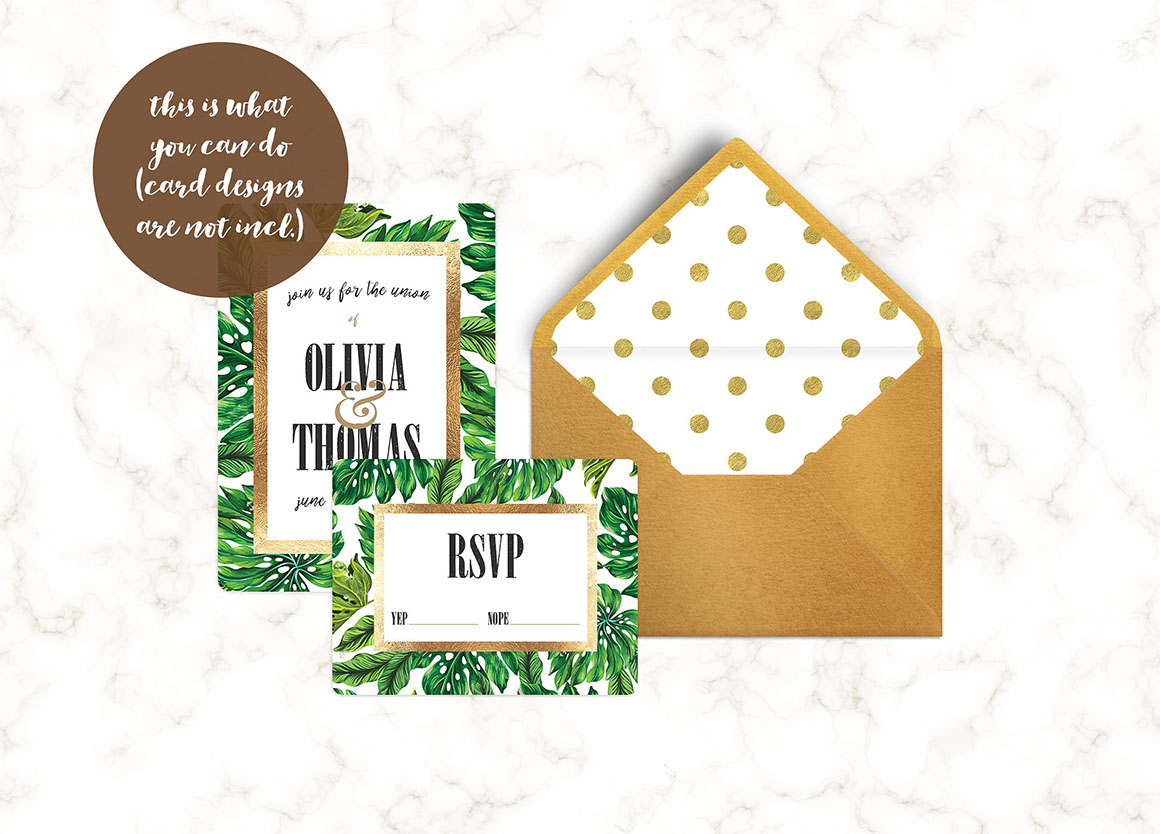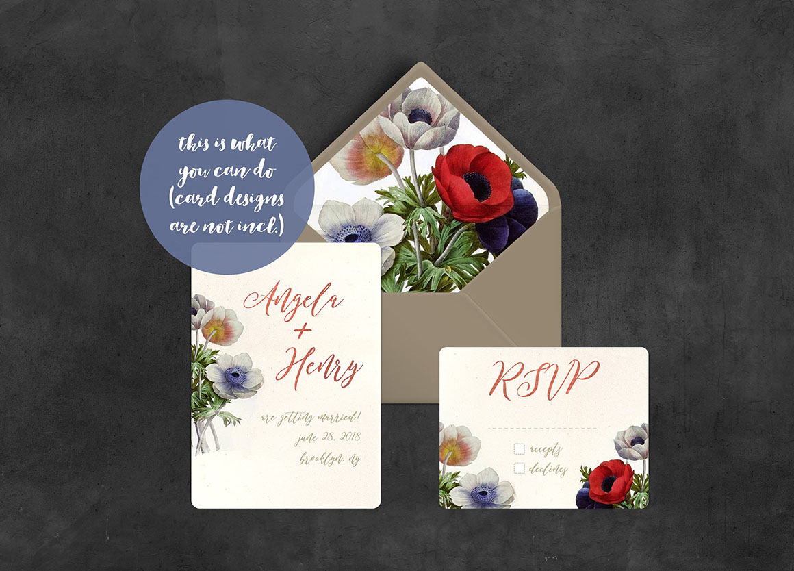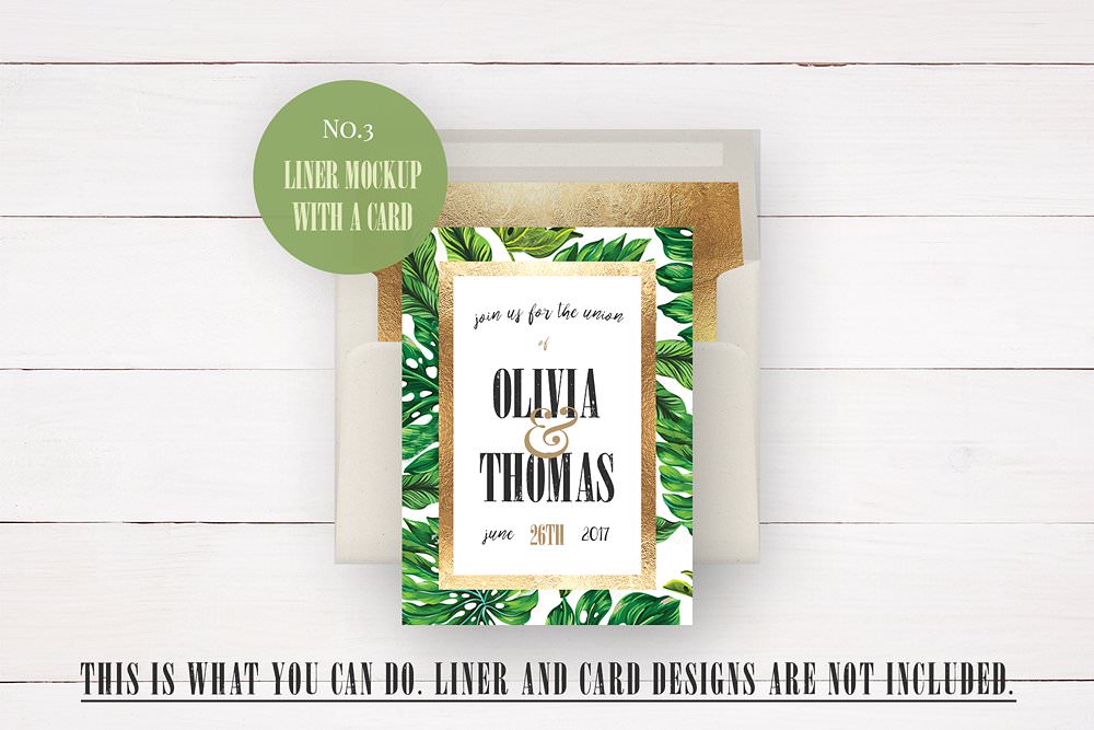 Card and envelope liner are editable via Smart Object, so it takes seconds to place your design inside. Don’t waste your time for taking photos of your work. Get this one instead and enjoy your saved time designing next great things!