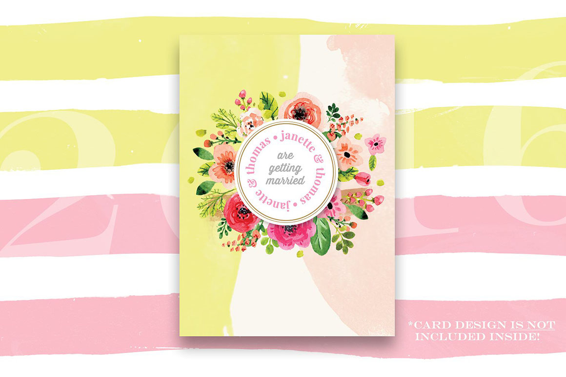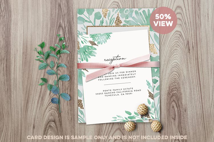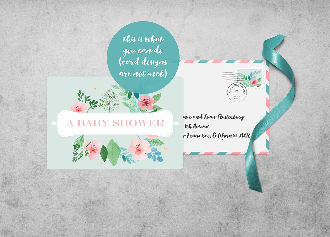 Card size is 5×7 in. inside 1925×1080 px Photoshop Document. We can customize card and envelope size for you, but we charge extra for this. Please let us know if you need different size – we’re responding quickly, so your custom size is near the corner.