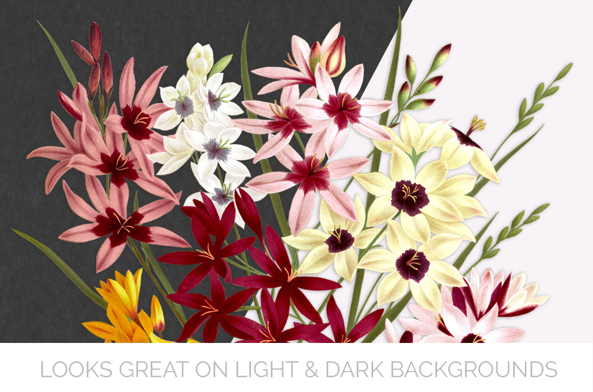 Realistic Floral Illustrations from EnlivenDesigns contains 180 floral transparent PNG images with realistic & vintage style floral illustrations! Don’t miss this artistic style floral graphics bundle and create your own floral artworks for you, customers or for sale!
