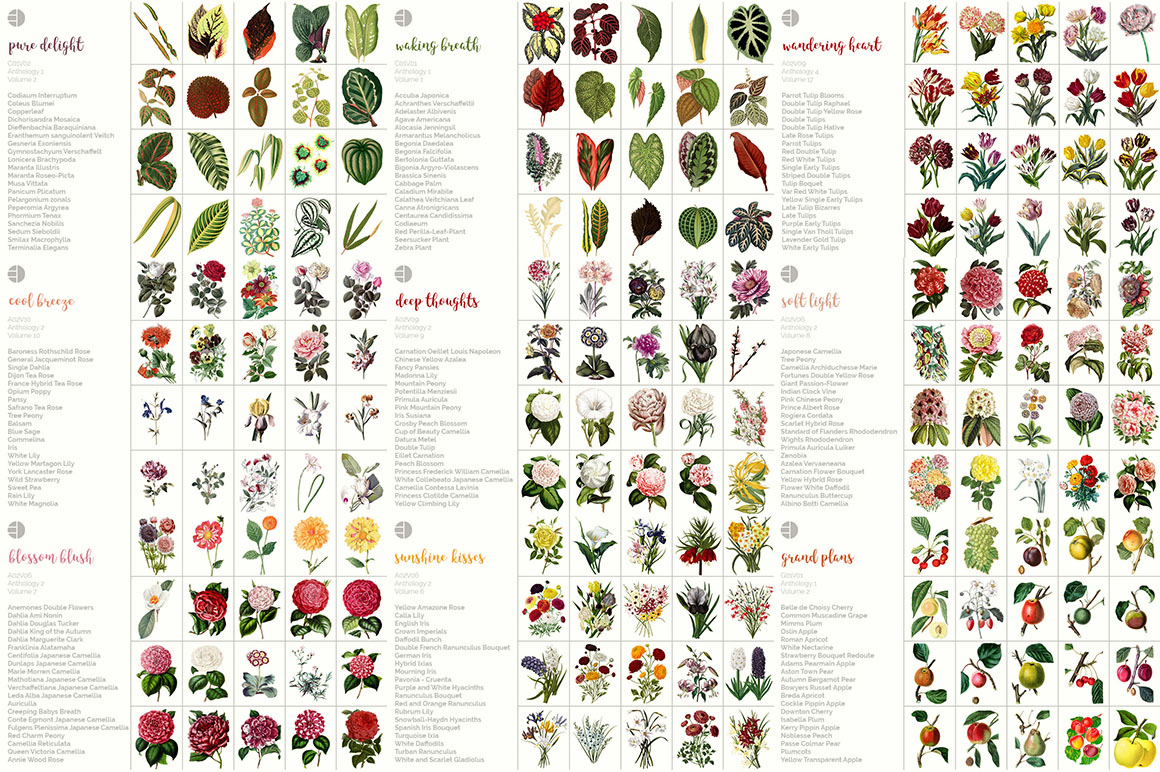The beautifully painted watercolor florals in this set have come from various books published in the 1800’s. Use the fruit for many projects like wedding invitations, cosmetic packaging, sublimation on mugs or t-shirts, and don’t forget those social media essentials!