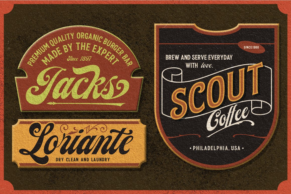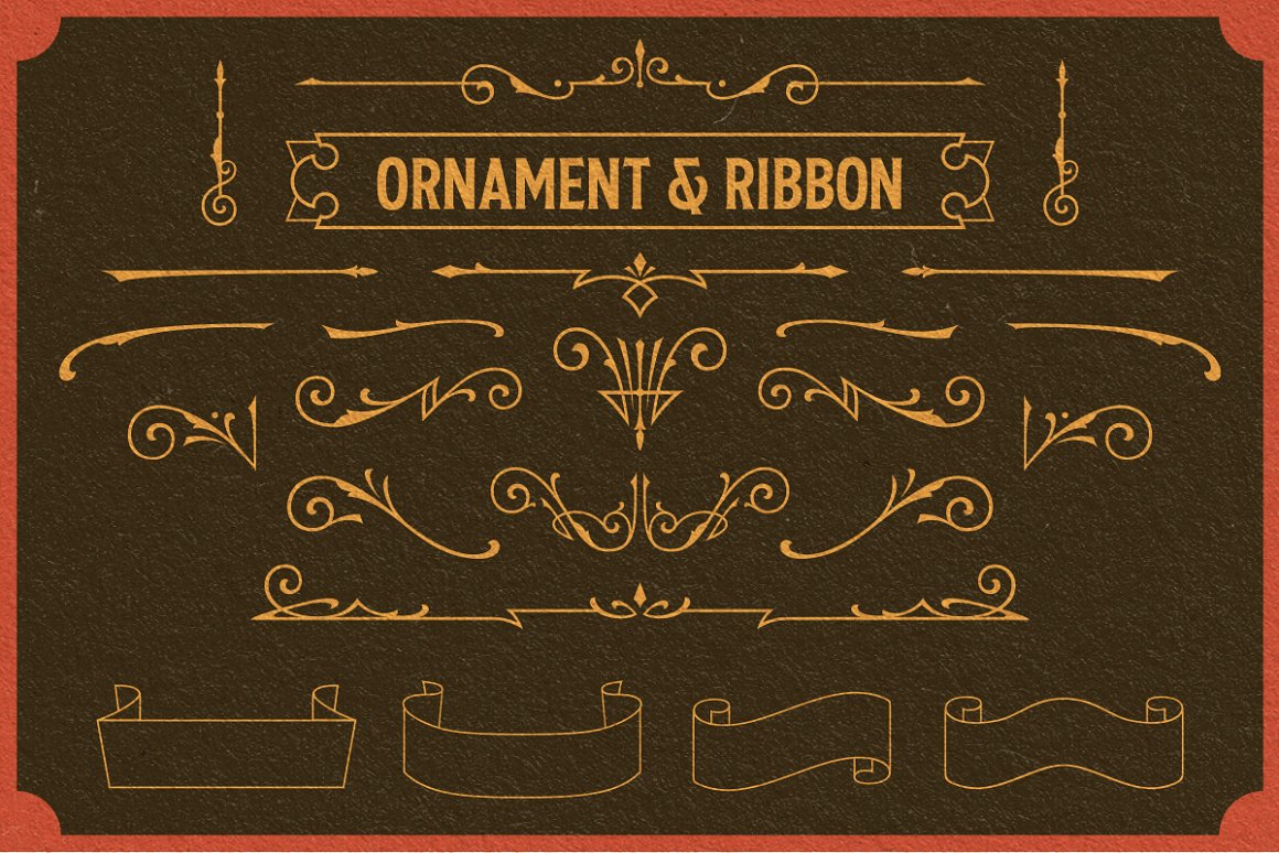 “Old is Gold”.. Perhaps that’s the best words to represent this typeface called Fragtude – a pair of vintage display typeface consist of bold script and serif. One of our finest typeface, crafted carefully to make sure its quality. Inspired by 40s 50s lettering and signage, the nostalgic feels will bring you back to the good ol’ days.. What makes this item even more special is you will get free bonus ornaments and ribbons in vector format! This typeface is perfectly made to be applied especially in logo, and the other various formal forms such as invitations, labels, logos, magazines, books, greeting / wedding cards, packaging, fashion, make up, stationery, novels, labels or any type of advertising purpose.