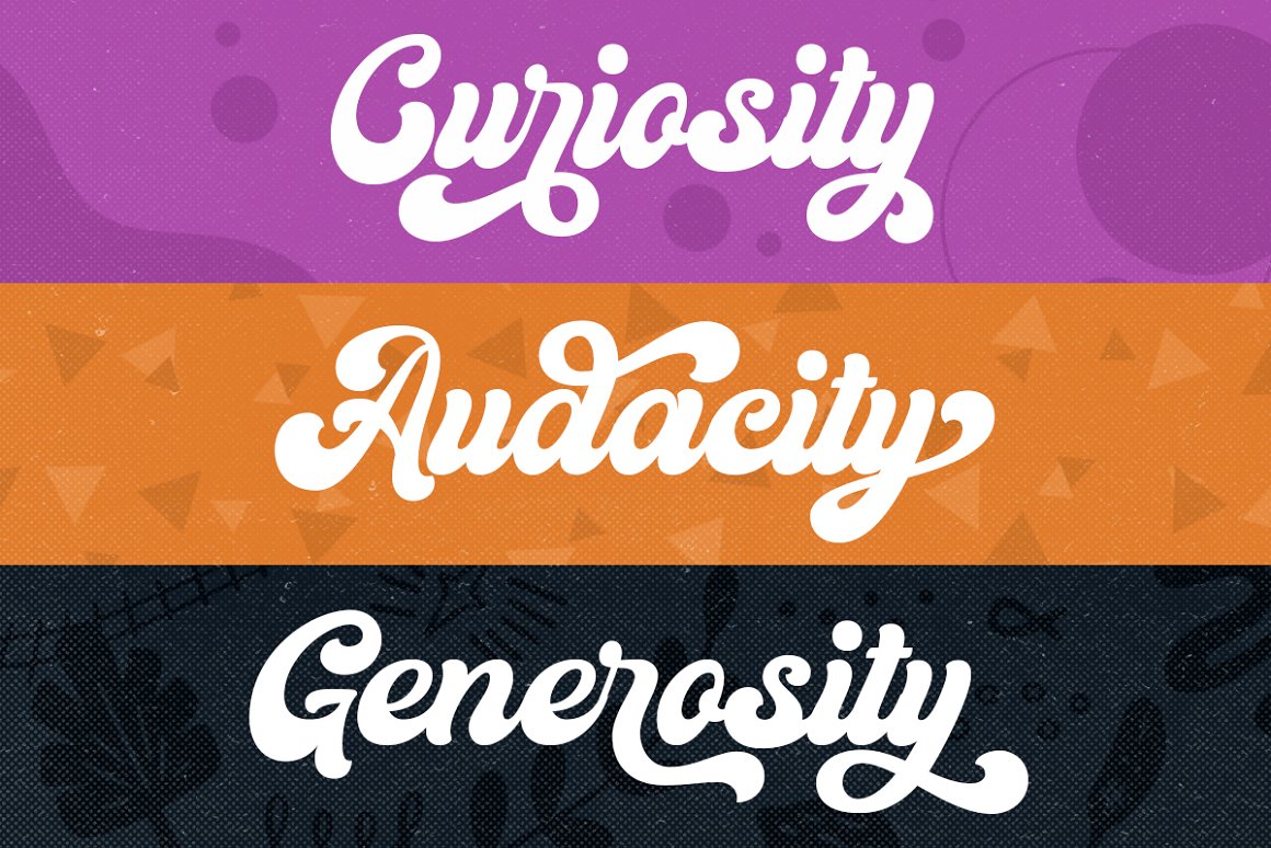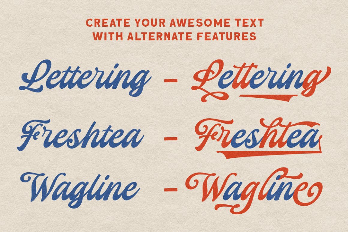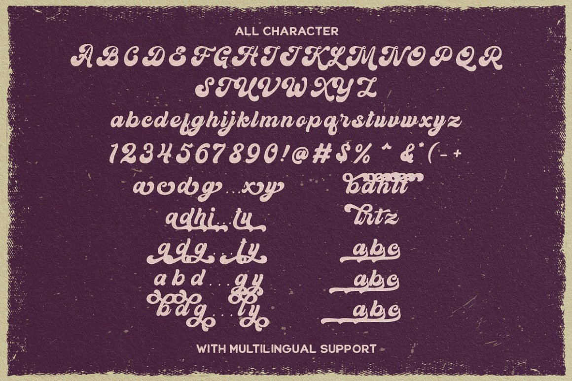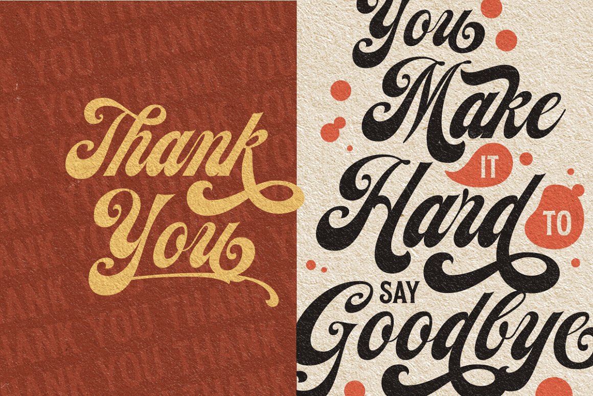 Introducing, The Bayland. A retro bold script which will bring you back to 60s feel. This typeface has the extrude version so you can create your retro effect font in ease. This font perfectly made to be applied especially in logo, and the other various formal forms such as invitations, labels, logos, magazines, books, greeting / wedding cards, packaging, fashion, make up, stationery, novels, labels or any type of advertising purpose.