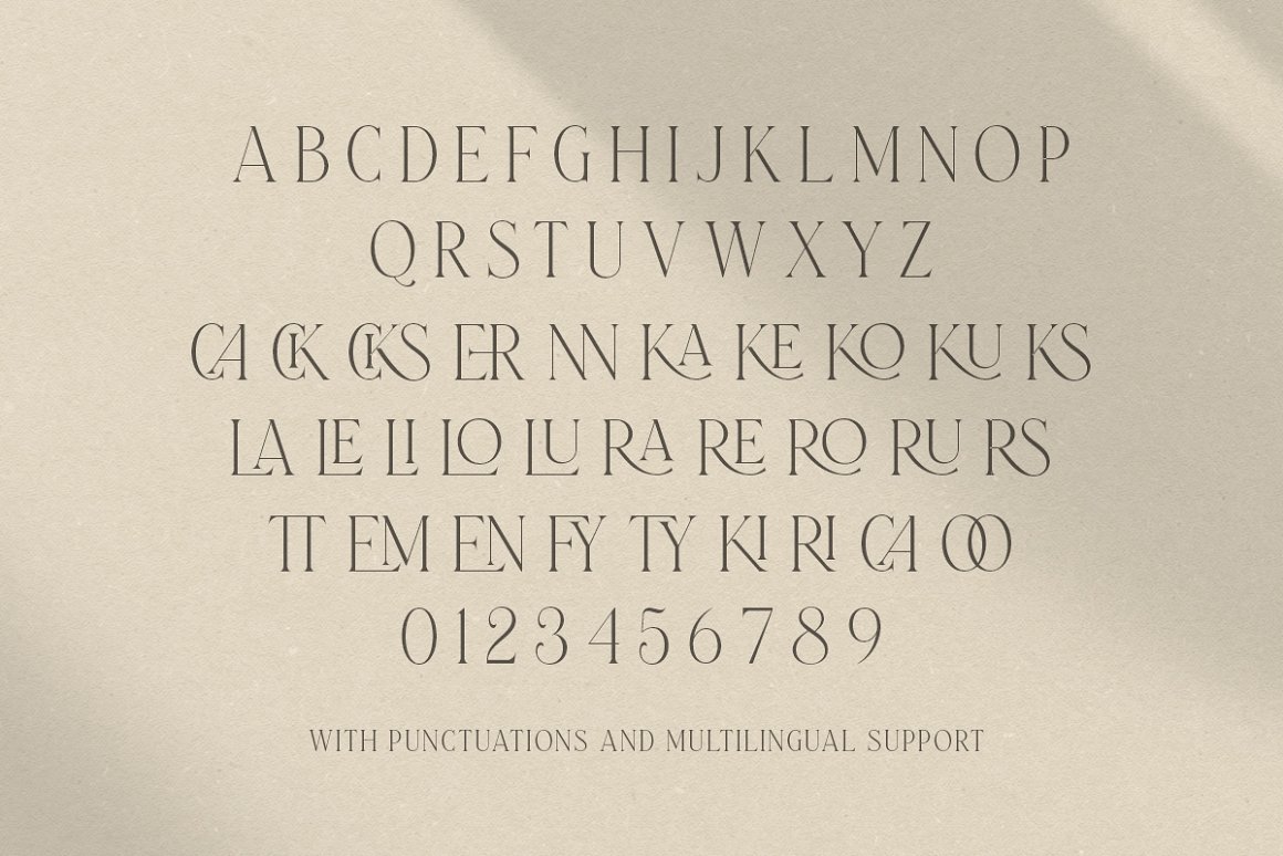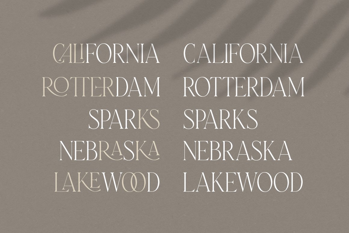 Introducing, Laterlocks, A sophisticated ligature serif from us. This typeface has been made carefully to make sure its premium quality and luxury feel. The ligatures makes this typeface unique and stands out rather than the regular serif font, very suitable for logo, headline, tittle, and the other various formal forms such as invitations, labels, logos, magazines, books, greeting / wedding cards, packaging, fashion, make up, stationery, novels, labels or any type of advertising purpose.