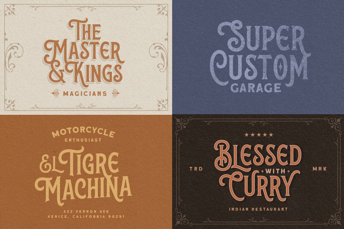 Realistic Retro Display Fonts Vol.2 from Letterhend Studio contains 33 multilanguage & decorative display fonts in 14 families for your new projects! Don’t miss this creative & retro style font & branding bundle 😉