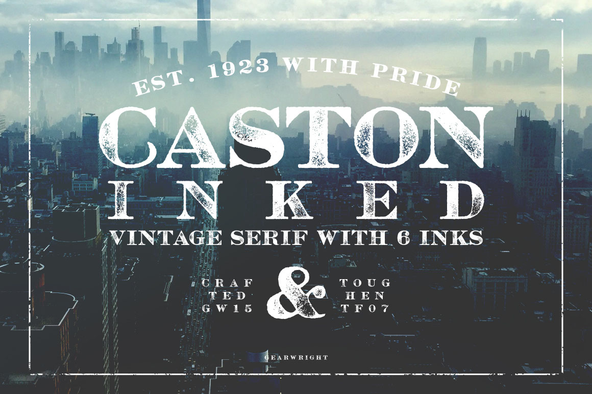 Made to mimic old inky printing works, Caston Inked was crafted to present idea like tradesman of integrity. This old school textured serif is an excellent (and real handy) choice for retro creative projects as well as hand lettering like works.