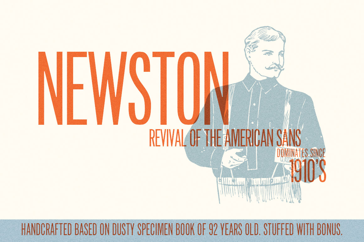 If you’re looking for a title typeface that expresses simple integrity with a vintage flavor, Newston is made especially for you. Try it – you’ll like it.