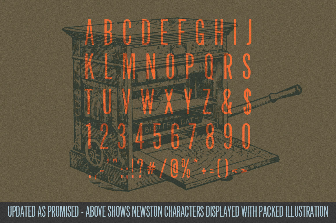 If you’re looking for a title typeface that expresses simple integrity with a vintage flavor – genuinely textured with fresh handsome ink, Newston Inked is made especially for you.