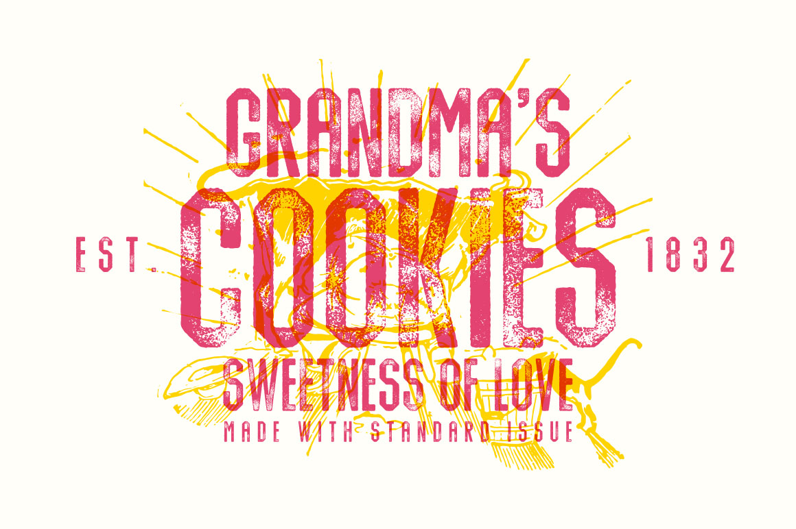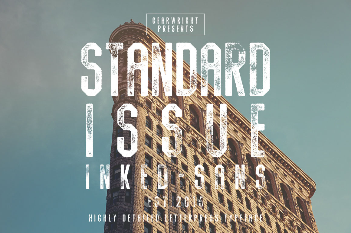 Introducing Standard Issue Typeface, a hexagonal sans designed to mimic old inky printing works. With its tastefully ink texture and old schools type style, Standard Issue will work very well in presenting industrial idea and packaging, giving it a weathered tradesman spirit.