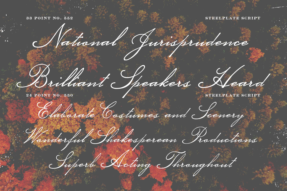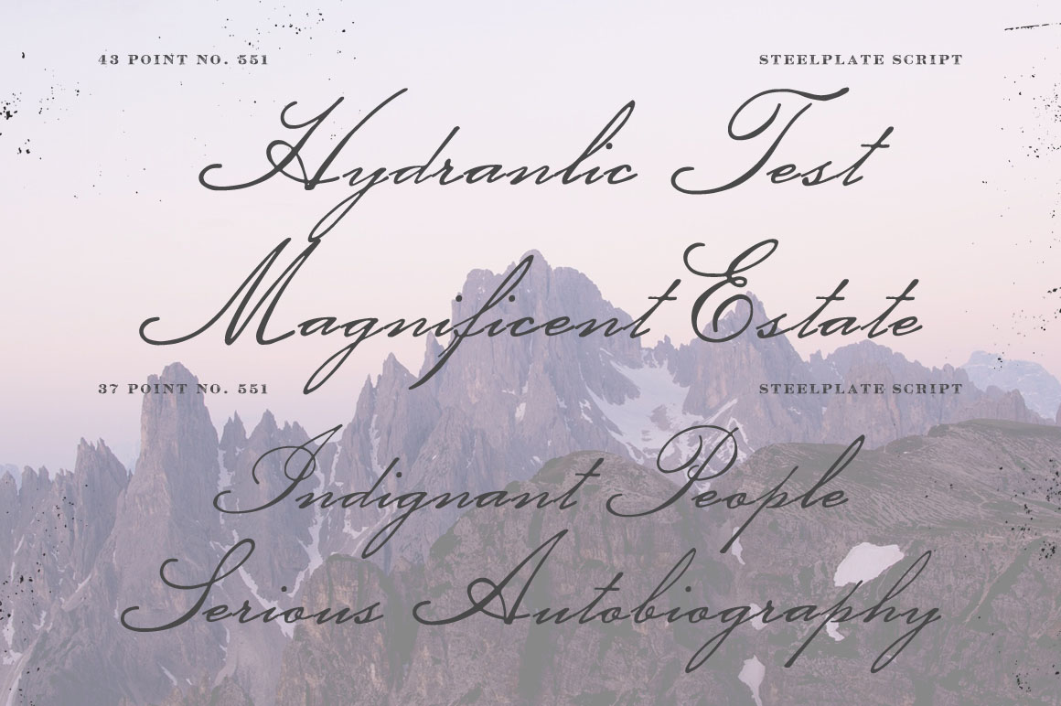 - Absolutely lovely typeface, Steelplate Script works very well for vintage theme project. Imagine this in an invitation card.