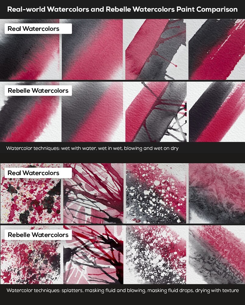 We compared the real-world and Rebelle watercolors and you can see yourself how fabulous are the results.