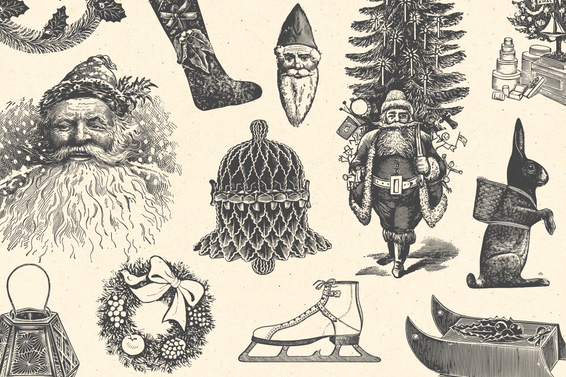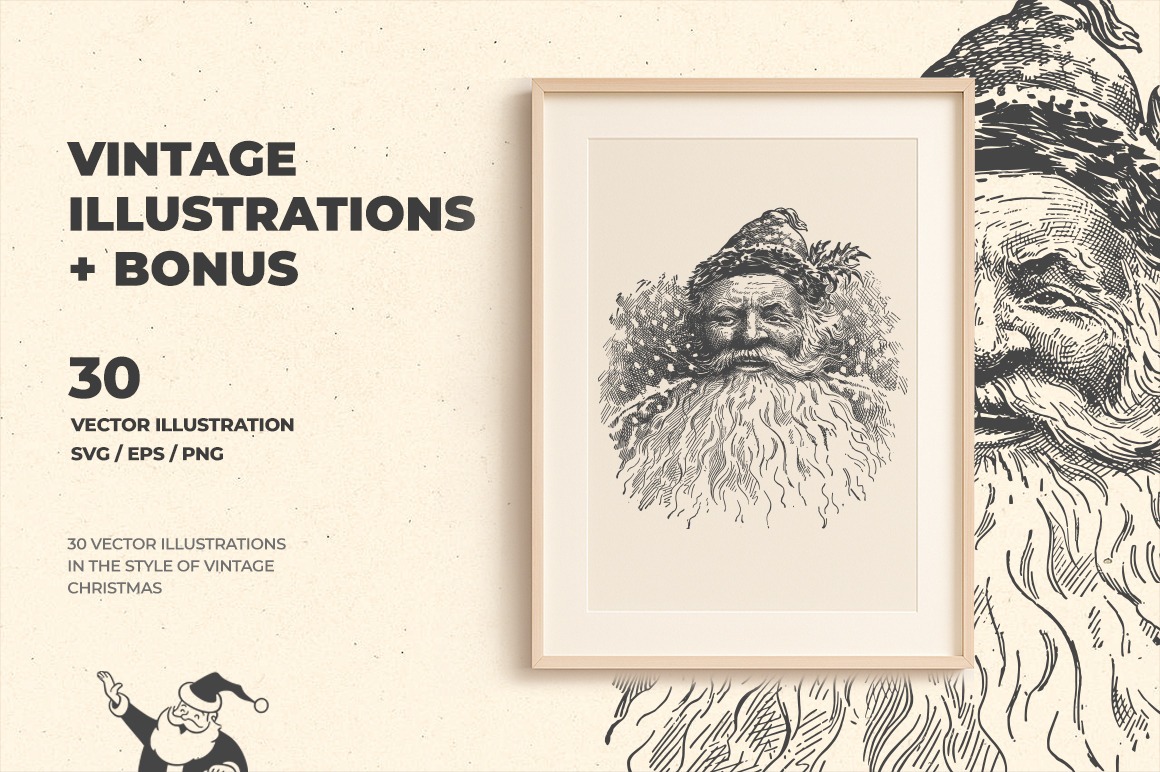 - 30 Christmas illustrations (SVG, EPS, PNG) – A set of 30 vintage Christmas illustrations. Perfect for creating a festive atmosphere in your projects — ideal for posters, greeting cards, stickers, packaging, and holiday decorations
