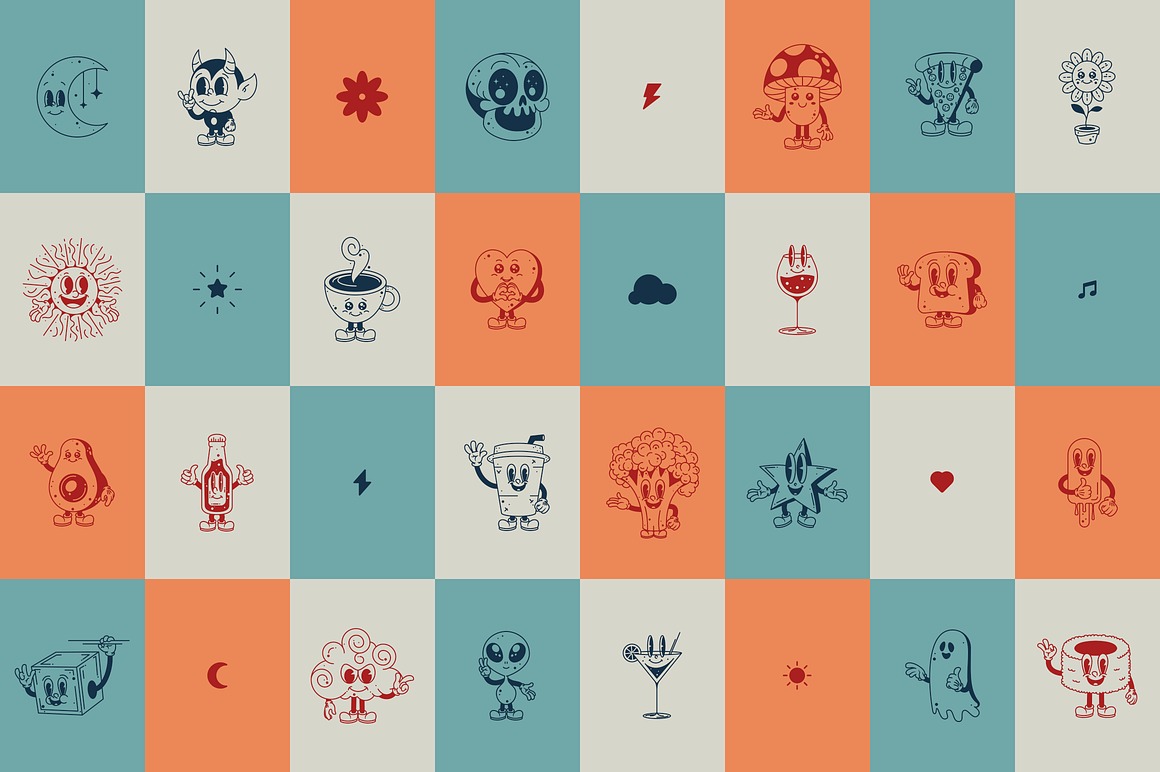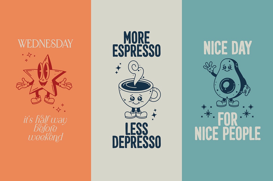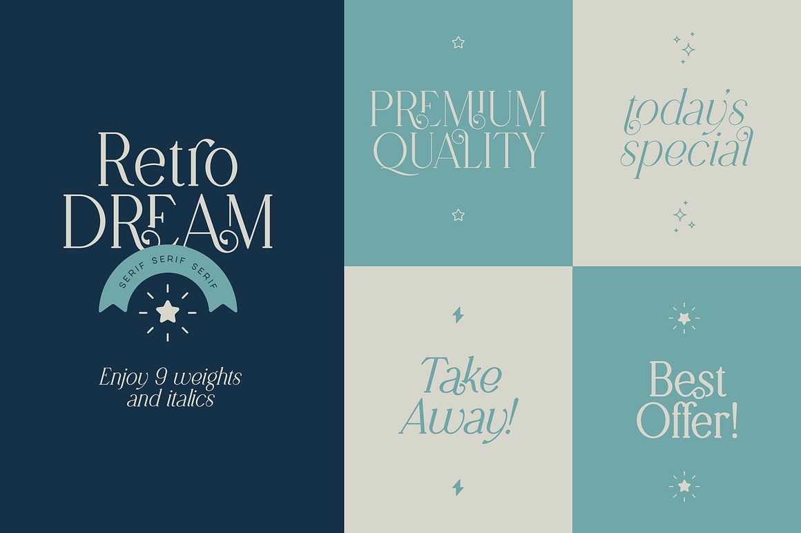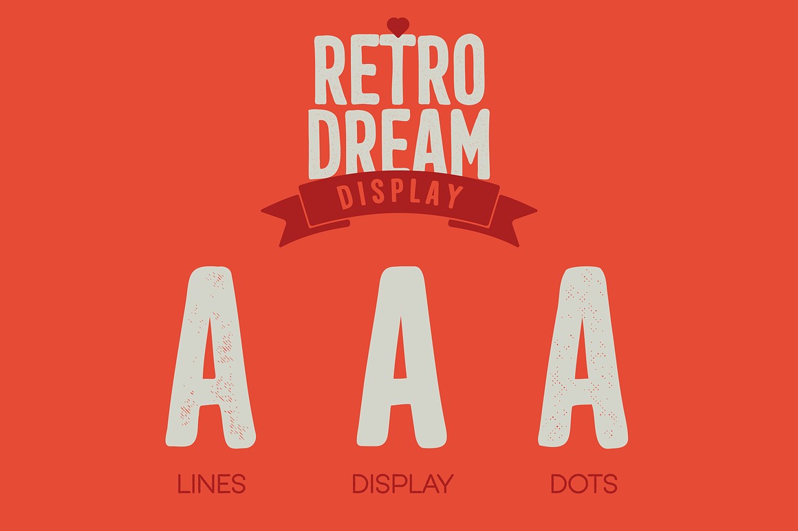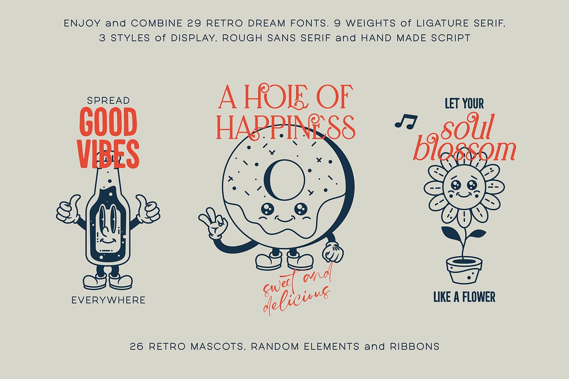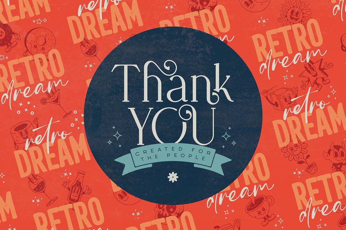 Retro Dream Family – 29 Fonts from VPcreativeshop contains 26 retro & creative display fonts & 3 dingbat fonts with graphic elements for your new projects! Don’t miss this creative & retro style font & branding bundle 😉