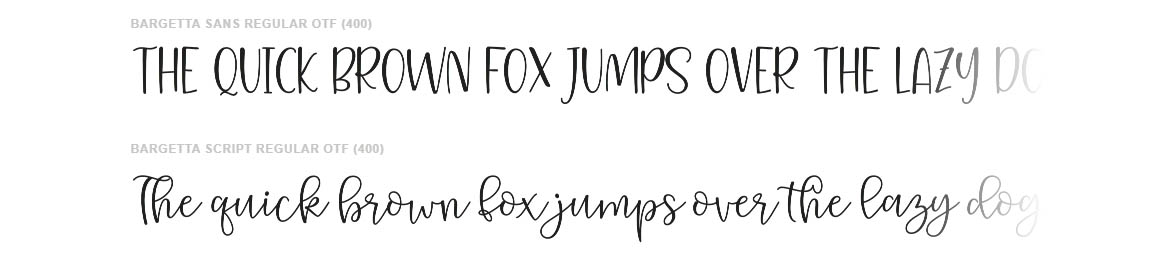 Bargetta Font Duo is a handmade font created with a brush and ink, bold and irregular baseline. Contains a complete set of lowercase, uppercase, alternates, ligatures, punctuation, numbers, and multilingual support. And additional Bargetta sans, working in harmony with Bargetta script to create typography awesome creations. Get some inspiration from the preview above. Contains a complete set of lowercase, uppercase, ligatures, punctuation, numbers, and multilingual support. Bargetta Font Duo is perfect for use in watercolor design or lettering style bold hand, such as blog header, branding, t-shirt, weddings, social media, product design, stationery, advertising, apparel, cover books, business cards, greeting cards, branding, merchandise, invitations and handmade quotes and more.