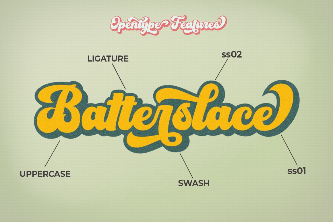 The Groenly Script Inspired by Retro style and combination with Hand Lettering style.Groenly Script have many alternative swash & ligatures character and have opentype features like a stylistic alternatice, stylistic set, ligature and swash so you can mix and match like a you want. The Groenly Script came with open type features such stylistic alternates, stylistic sets & ligatures good for logotype, poster, badge, book cover, tshirt design,handwritten quotes, product packaging, header, poster, merchandise, social media & greeting cards.
