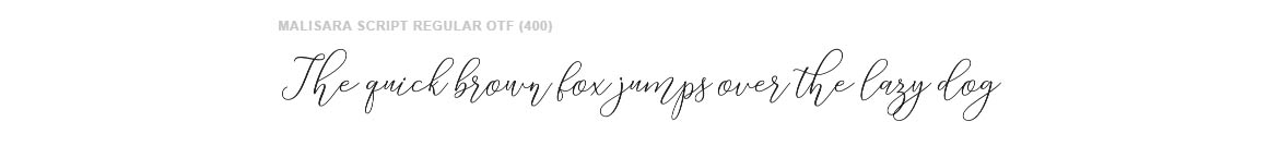 Malisara Script is elegant calligraphy font, designed to convey elegance and style. It is slender, feminine and friendly, This font is casual and pretty with swashes. Can used for various purposes. such as logo, product packaging, wedding invitations, branding, headlines, signage, labels, signature, book covers, posters, quotes and more. Malisara Script Script features OpenType stylistic alternates, ligatures and International support for most Western Languages is included. To enable the OpenType Stylistic alternates, you need a program that supports OpenType features such as Adobe Illustrator CS, Adobe Indesign & CorelDraw X6-X7, Microsoft Word 2010 or later versions.