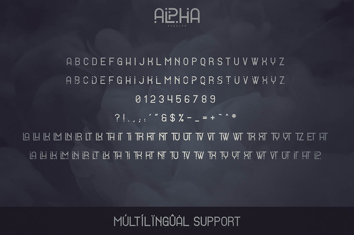 Alpha is perfect for branding projects, home-ware designs, product packaging, magazine headers – or simply as a stylish text overlay to any background image.