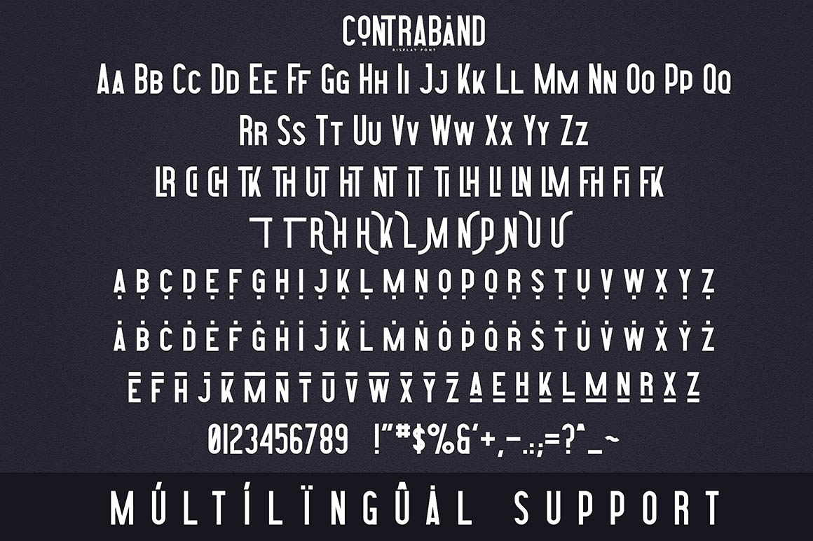 Contraband is perfect for branding projects, home-ware designs, product packaging, magazine headers – or simply as a stylish text overlay to any background image.
