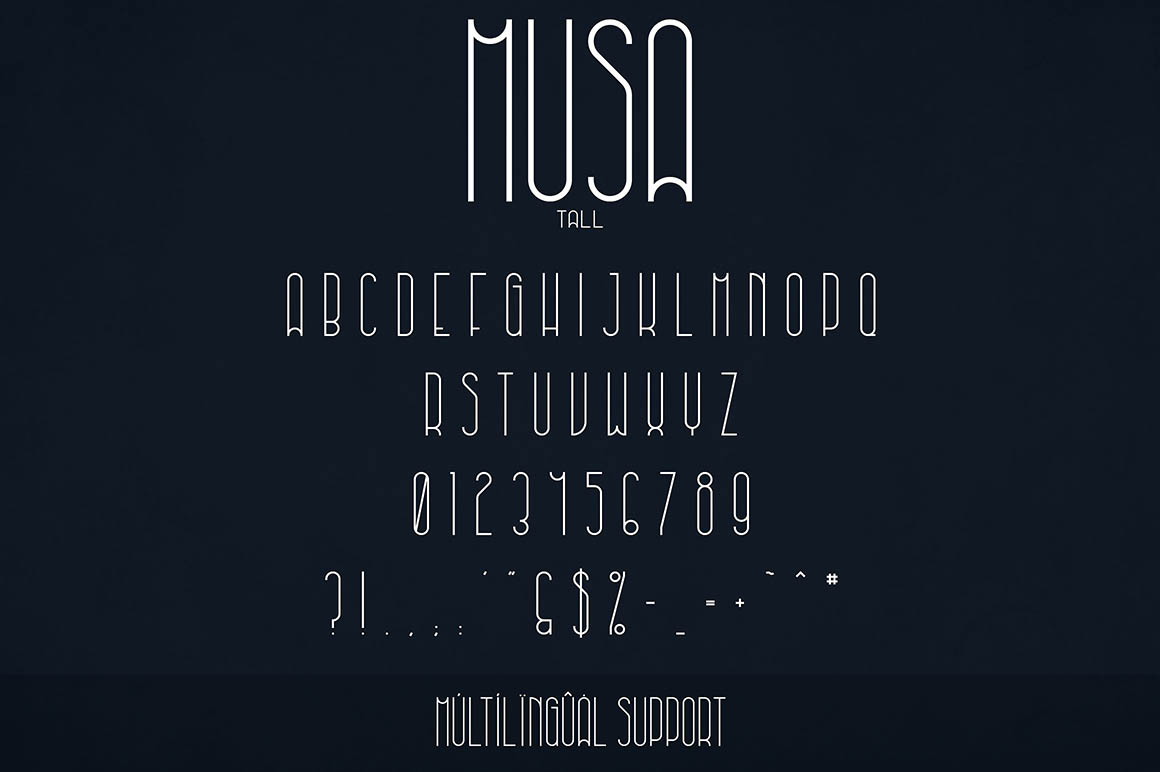 Musa is clean, tall typeface with 12 fonts and multilingual support. It’s a very versatile font that works great in large and small sizes.
