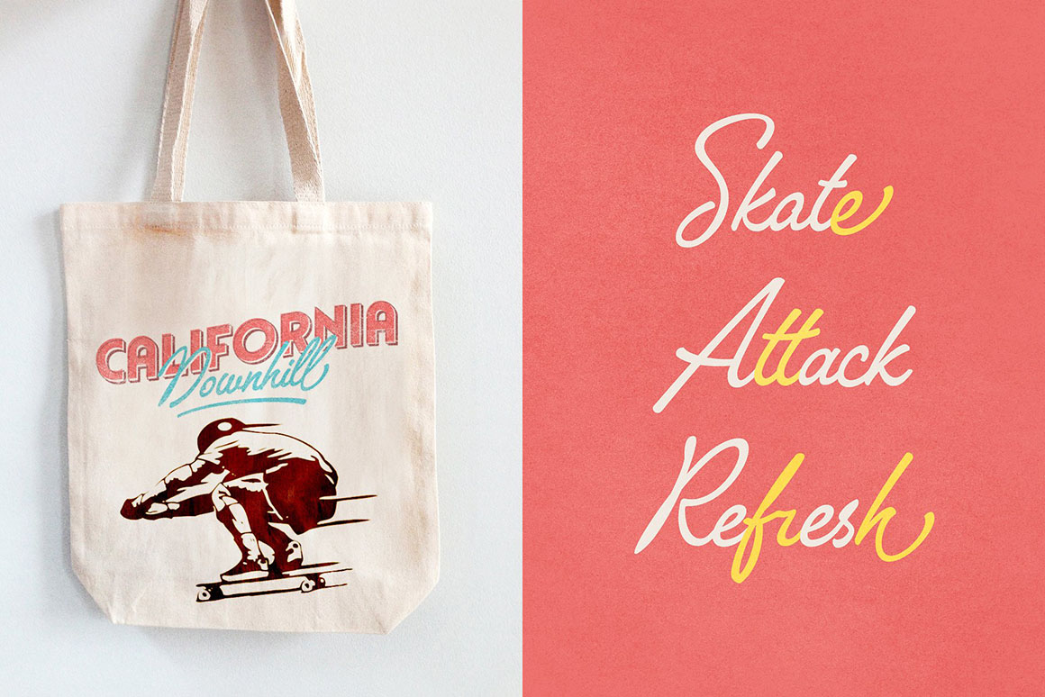 Introduce you perfect font-pair to give you many typographic variations for your project. Does not really matter, what is the project — t-shirts for sale or logo for your friends cafe, music poster or candy’s package. These two lovely fonts would be perfect to combine in your design. Inspired by Travel Posters from Early XX Century. A little bit art-deco massive sans with some playful characters like A, C, G, M, R, S, V, W and Handwritten retro style brush script.