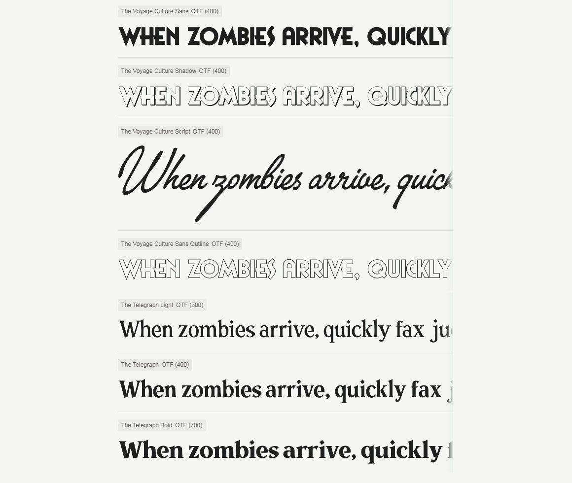 - The Telegraph Light: Use it for text blocks, or for gently light header typographic. Try to make more wide tracking with capitals, it looks good.
