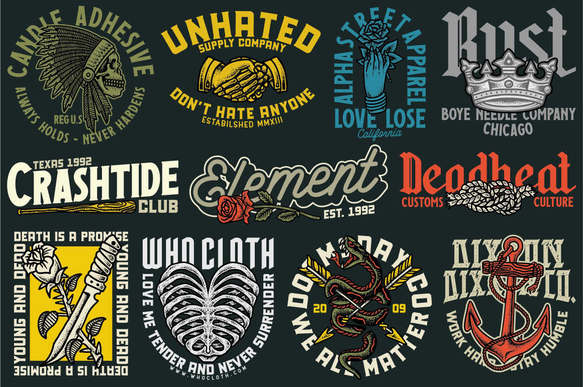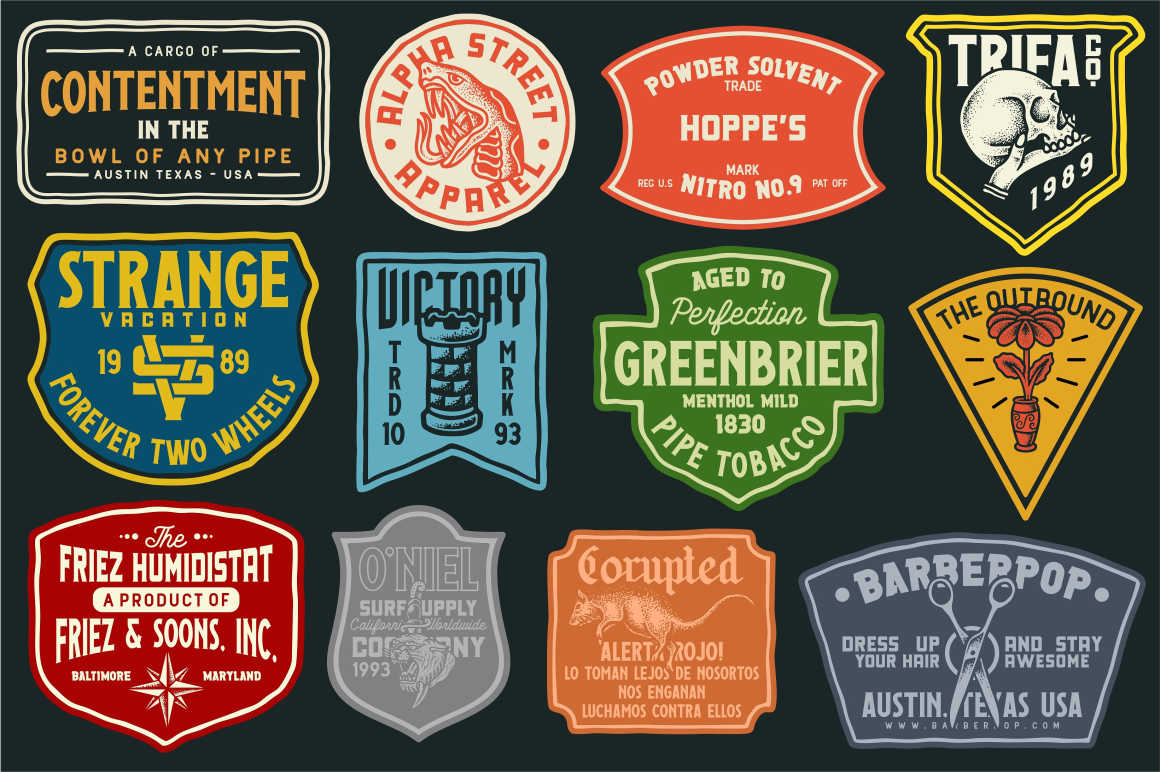 24 cool vintage style display fonts and 430+ vectors & logo templates!