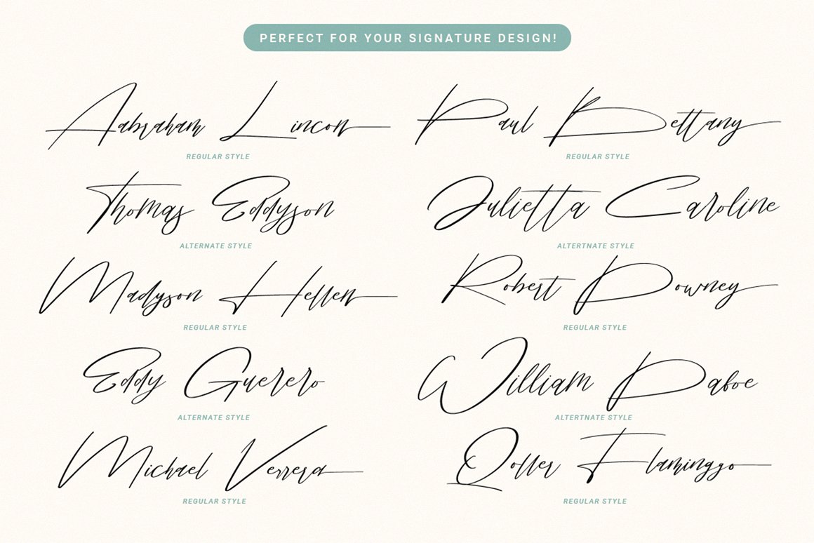 Bisqootte is modern calligraphy font that is made by Ferry Ardana Putra. This font is handmade manually using a traditional pen inspired by natural writing and random scratches. Bisqootte is a modern calligraphy typeface that has a luxury feels with additional swashes, alternates, and ornaments. Combined that precious combos to make your best natural-signature feel on your glamour project! Bisqootte is perfect for branding, photography, invitations, quotes, watermarks, advertisements, social media posts, stationery, labels, and more!