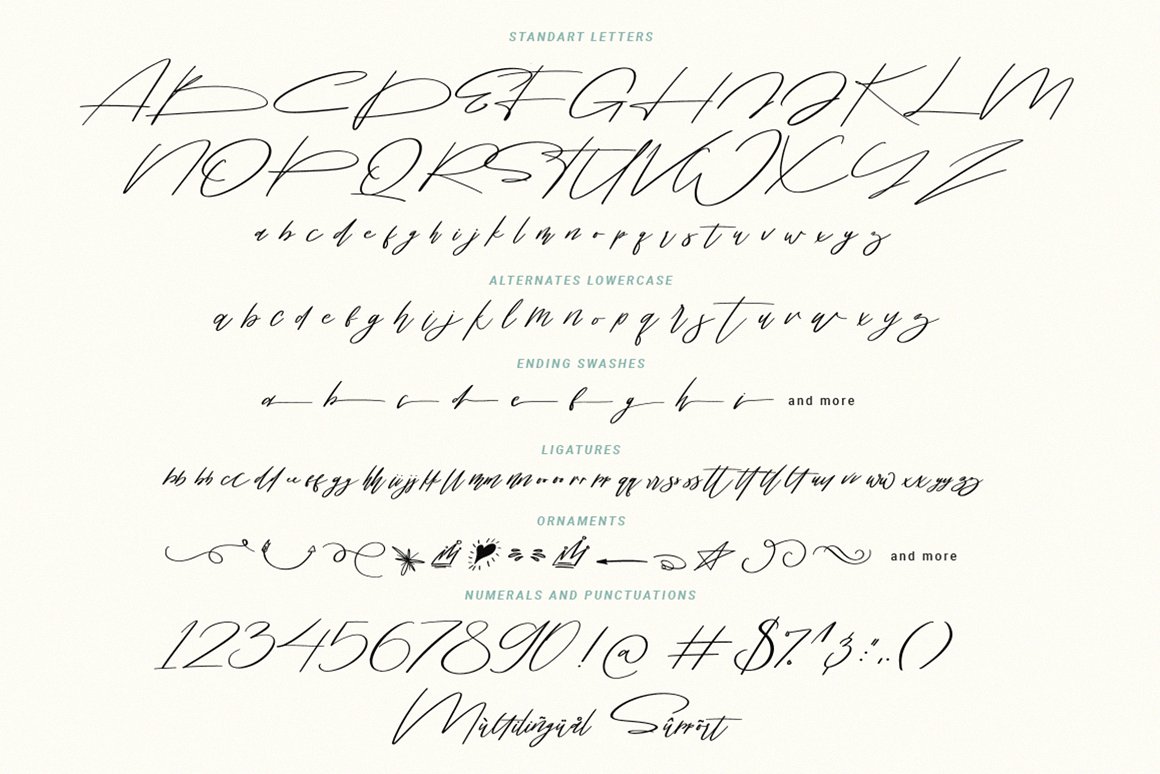 - Up to 80 Stylistic Alternates with Swashes and Ligatures!