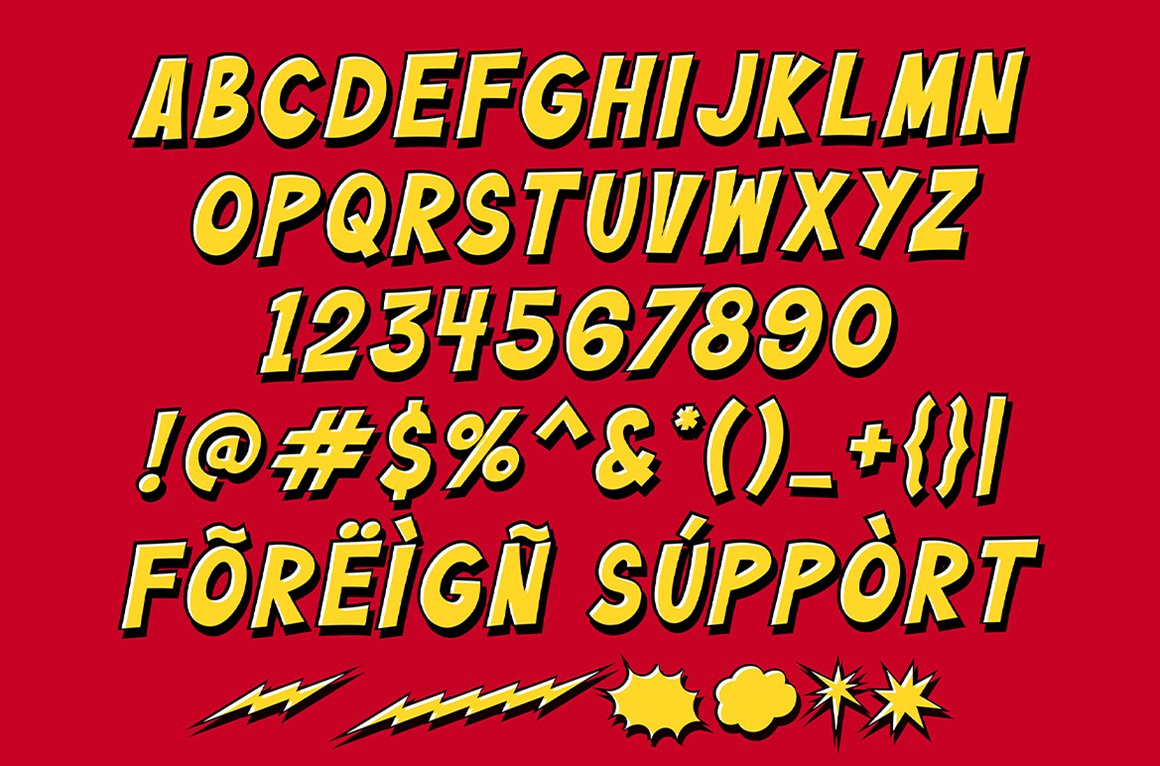 Buzinga! is a fabulous new layered comic book style font that is inspired by Sheldon’s favorite jokes word – Buzinga! You can combine this font with any layered style included in this font family. This font is perfect for adding a comical feel to your designs, whether it is comical quotes, labels, logotype posters, t-shirts, and many more!