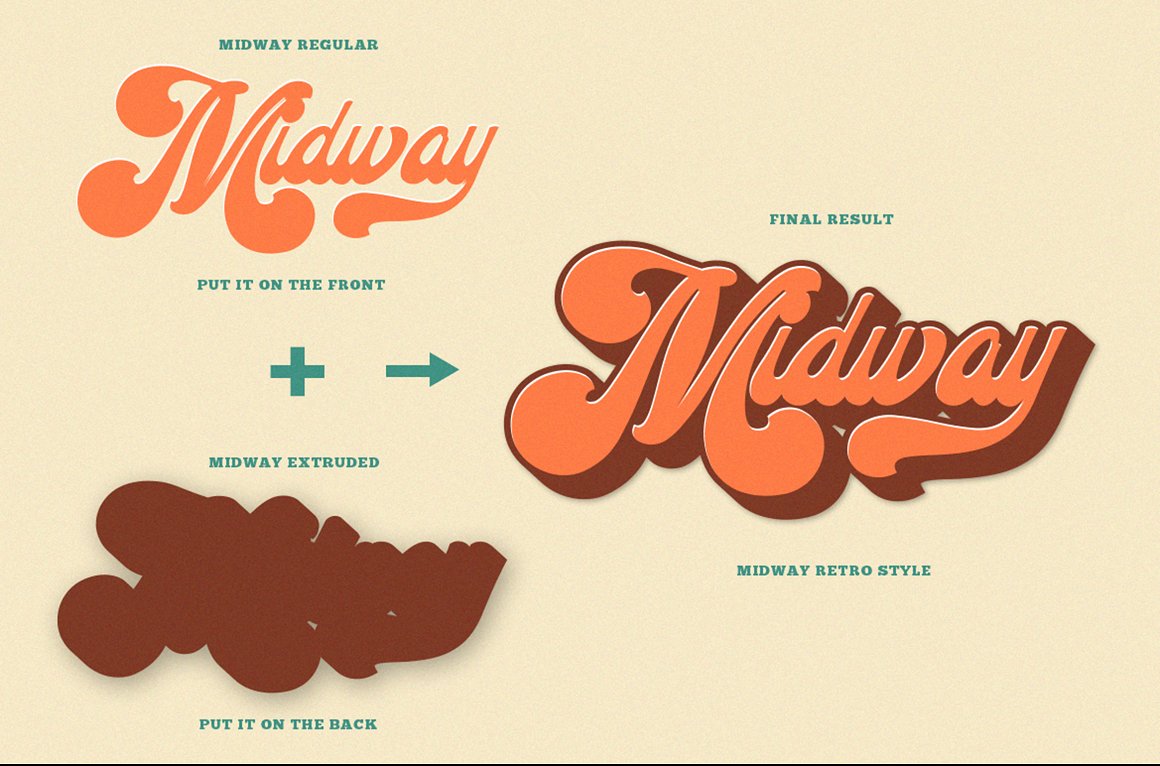 Midway is an elegant retro bold script typeface. Use this typeface and you will make a retro design with ease! Combined your design with dozens of stylistic alternates and elegant swashes which are included in this typeface. This retro typeface is really perfect for logo design, t-shirt, vintage and retro badge, vintage quotes, branding, packaging, etc.