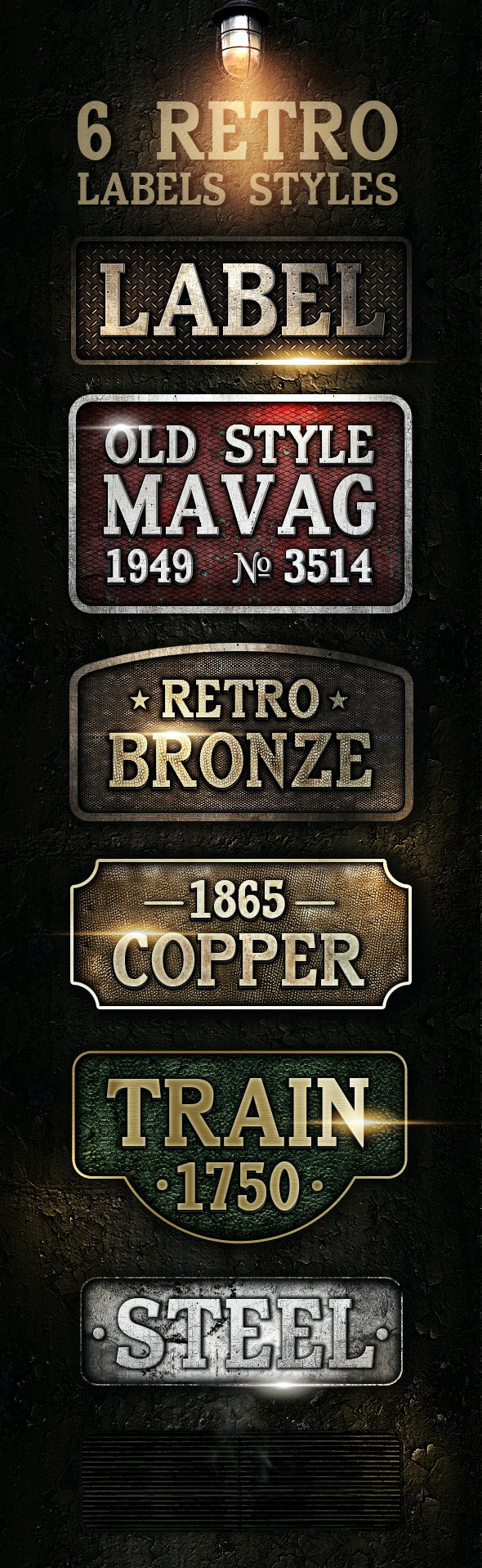 - 28 retro & vintage signs (layered PSD template) & 100 layer styles (ASL file)