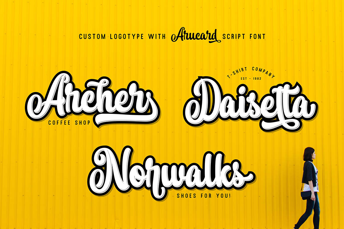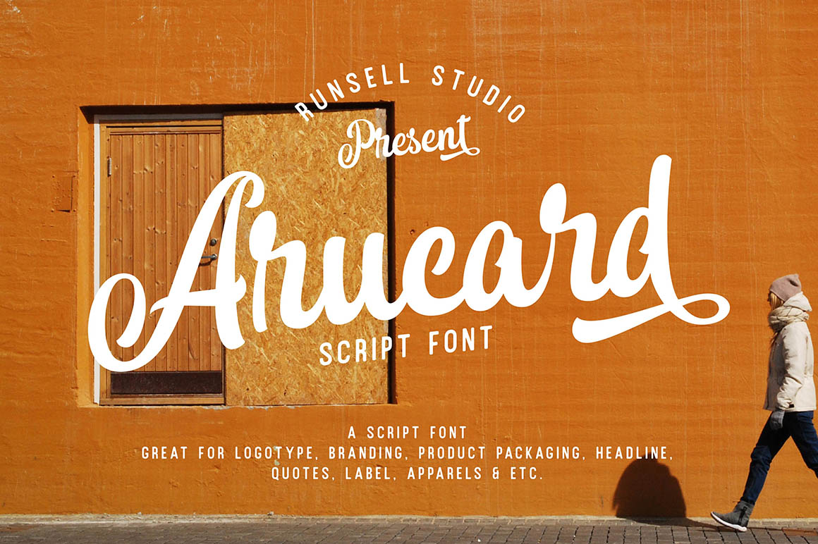 Introducing Arucard! A classy script font with personality. Arucard is perfect for branding project, logotype, label, product packaging, headline, letterhead, typography, apparels, or simply as stylish text to any background image.