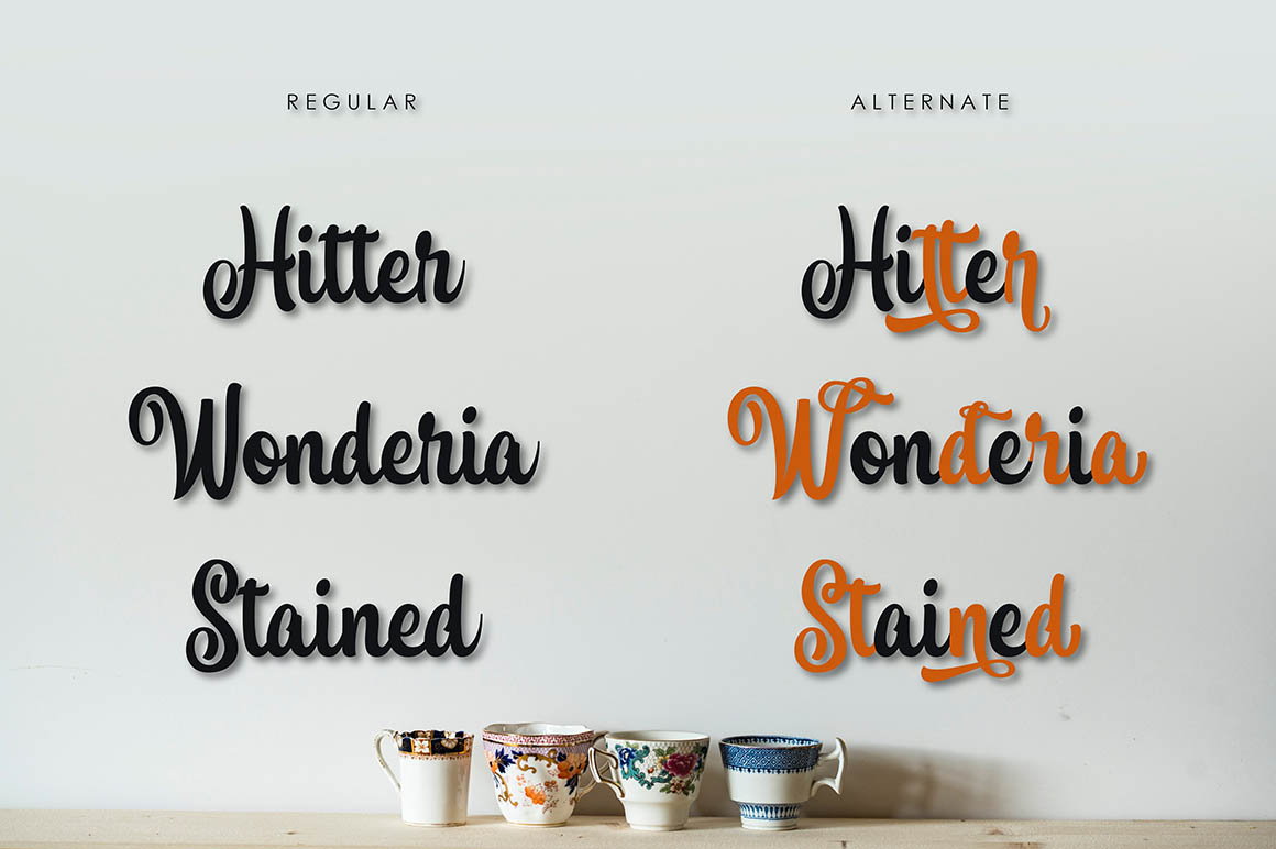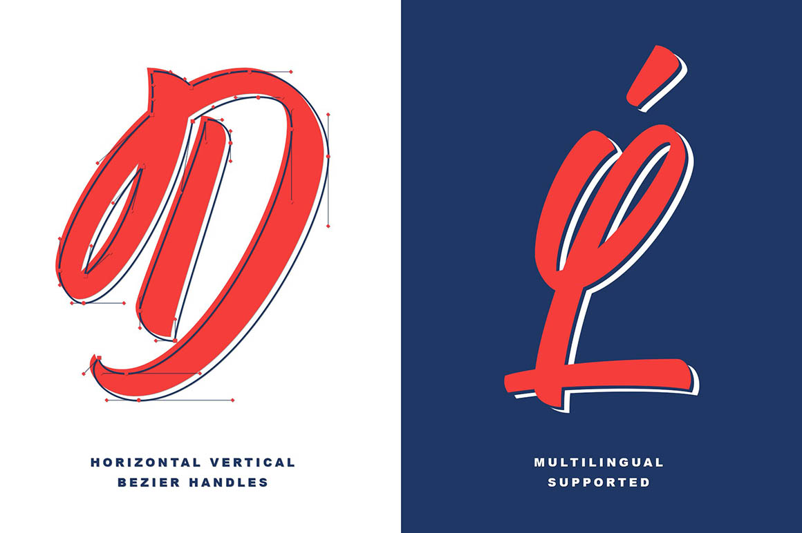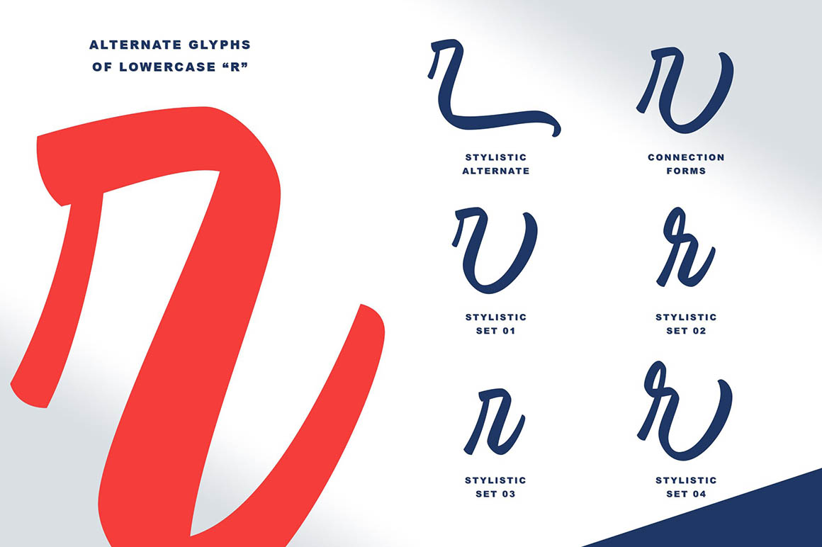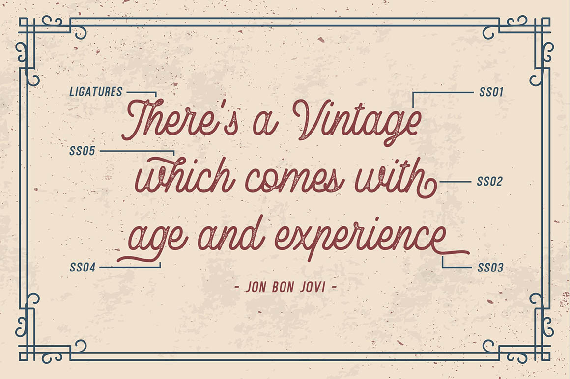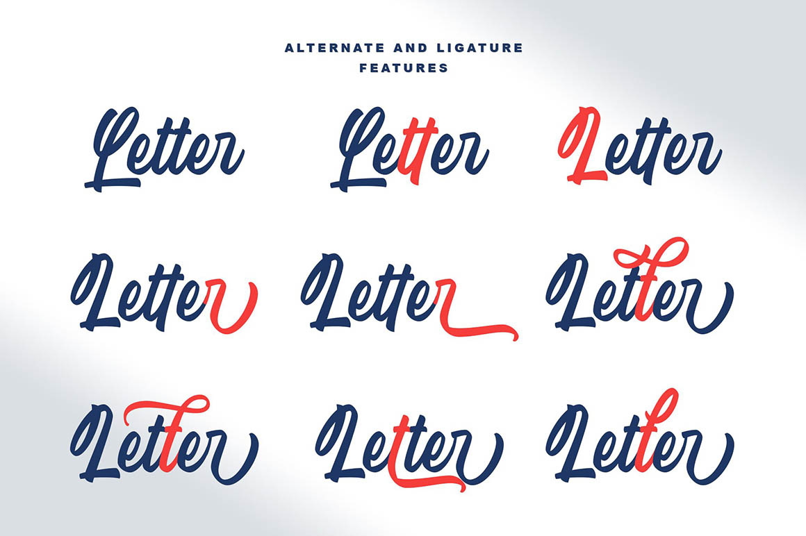 - 70+ Ligatures, Contextual alternates, and Stylistic alternates