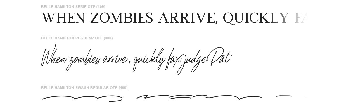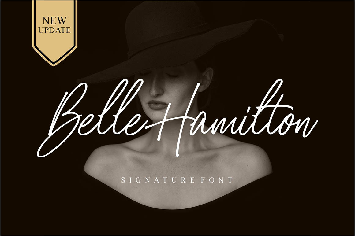 Belle Hamilton is a beautiful signature font with the natural flow. Belle Hamilton signature style perfectly on invitations, logotype, branding, art quote, cards, product packaging, headers, letterhead, apparel design, label, and etc. Belle Hamilton comes with uppercase, lowercase, numerals, punctuation, multilingual characters.