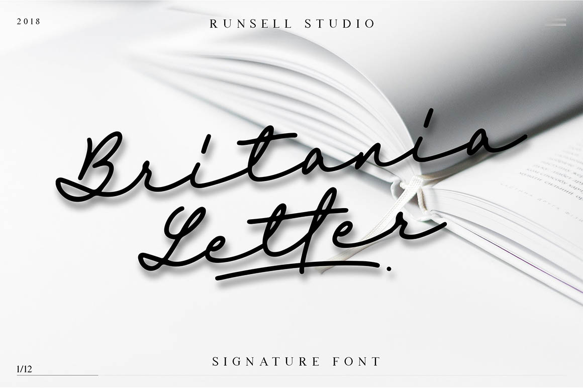 Britania Letter is perfectly suited to signature, stationery, logo, typography quotes, magazine or book cover, website header, clothing, branding, packaging design and more. A handwritten script font containing upper and lowercase characters, numerals and a large range of punctuation.