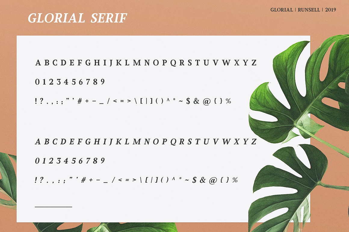 Glorial fonts that special for fashion and matches applies in some designs such as the logotype, brand, magazine, website or blog headlines, packaging, branding, quotes, invitation cards, greeting cards, business cards, and wedding more.