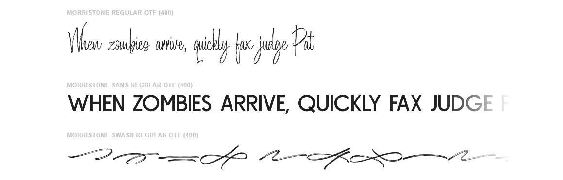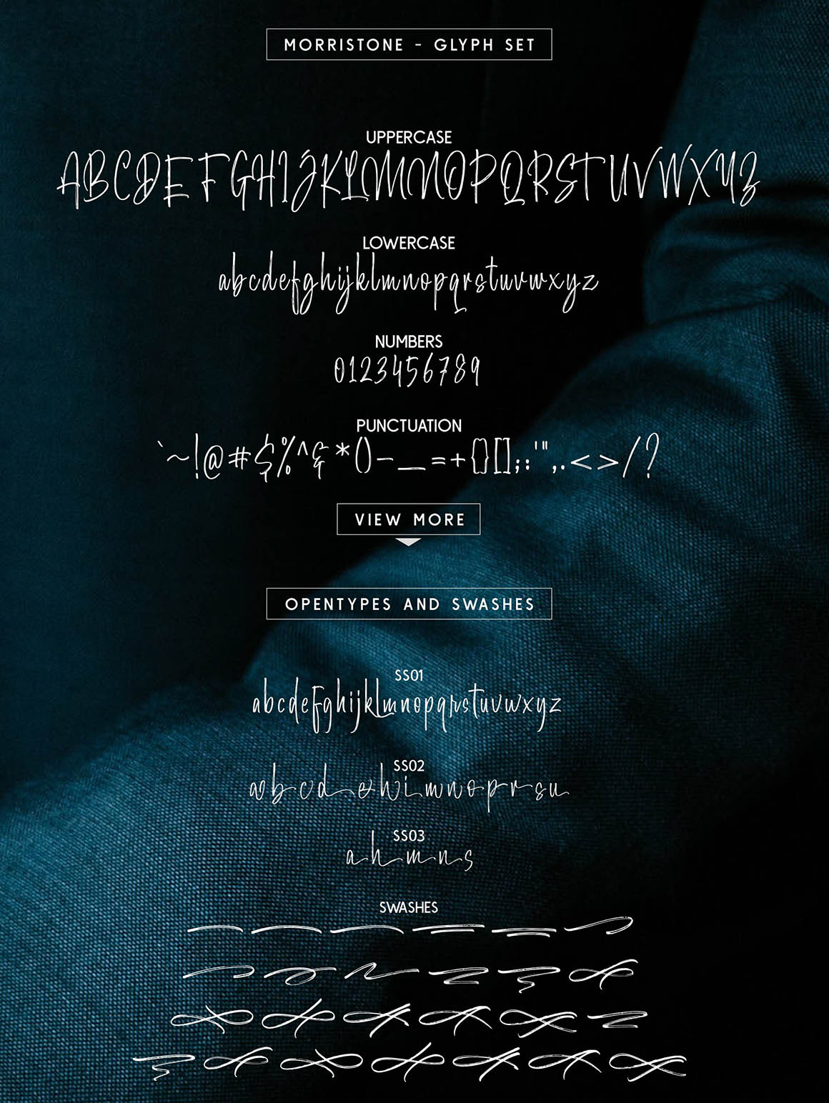 Morristone is a typical font with such a signature look with natural flow and has the texture inside. This font can make your design look authentic and handcrafted. Morristone suitable for this use in you for the signature, logotype, invitation cards, quotes art, website header design, packaging, branding and more. This font is always exciting to design you create.